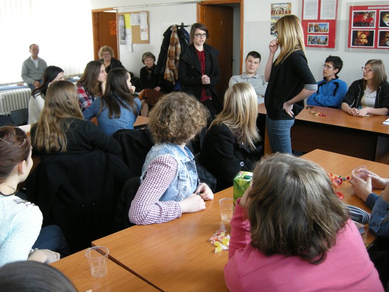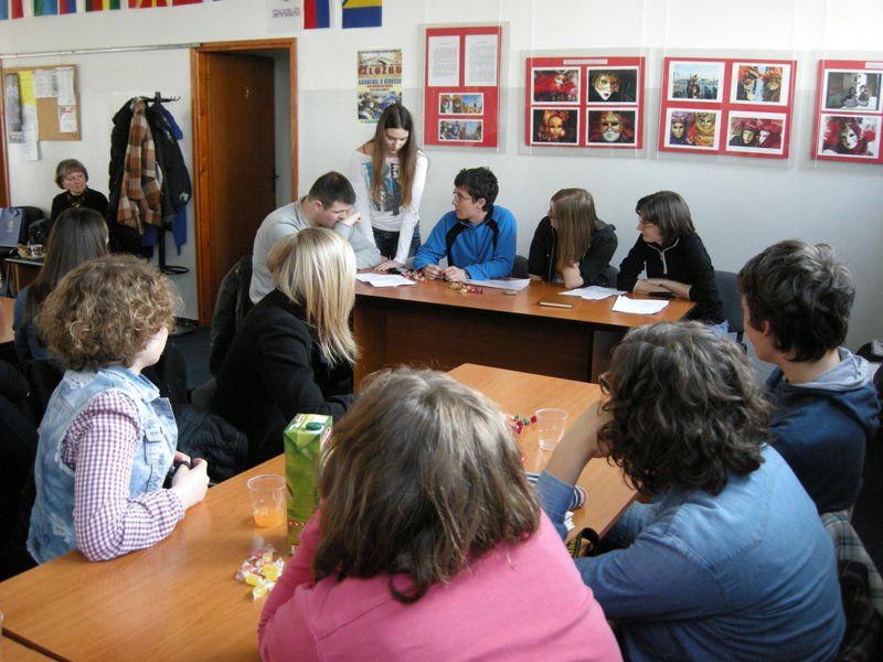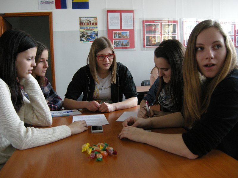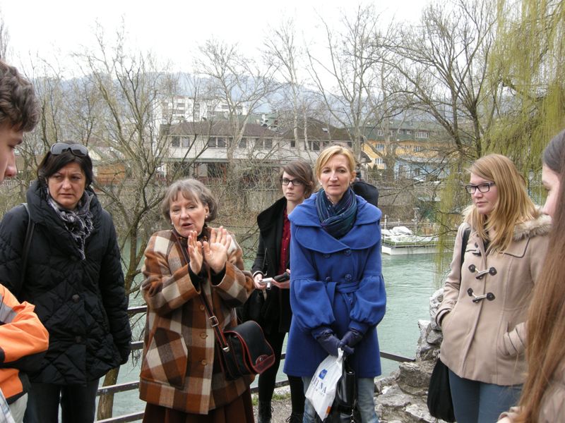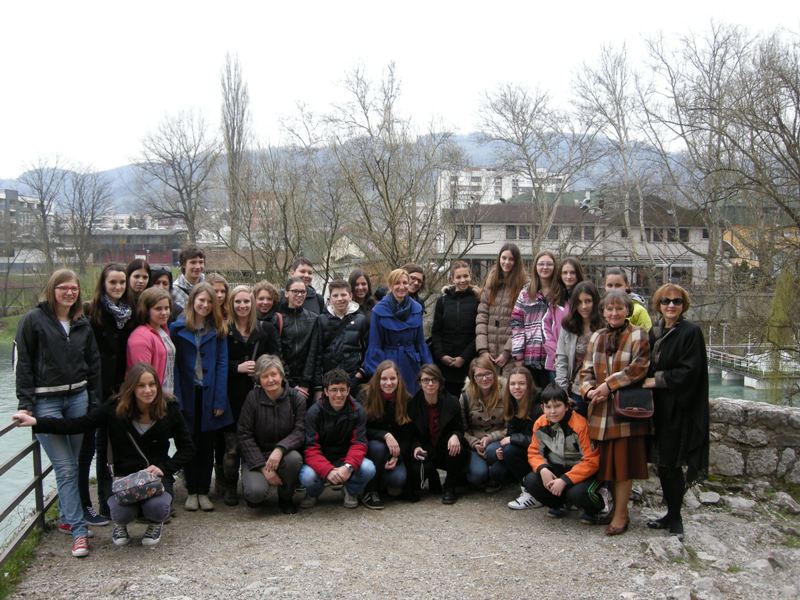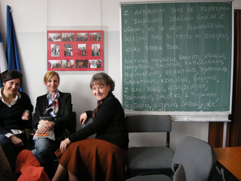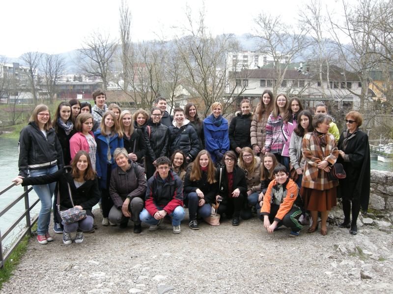 Dijaki so prišli skupaj s profesoricama Suzano Krvavica in Natalijo Petakovič, spremljala jih je tudi Branka Bukovec z Društva za razvijanje prostovoljnega dela Novo mesto, saj je prav ona pobudnica številnih projektov, ki povezujejo Banjaluko in Novo mesto. V petek so si gostje skupaj z našimi učenci ogledali samostan Trapisti in zdraviliški kraj Slatino. Prespali so pri vrstnikih in z njimi so naslednji dan prišli k pouku slovenščine. Učenci dopolnilnega pouka slovenščine so jim predstavili skeč Šale o šoli. Dve dijakinji iz Novega mesta sta povedali nekaj besed o gimnaziji, vsi skupaj pa so se preskusili v ustvarjalnem pisanju. Kako je mogoče opisati prihod v Banjaluko? Na veliko različnih načinov! Izziv nam je bila knjiga Raymonda Queneaua Vaje v slogu. Ni bilo dovolj časa, da bi dogodek opisali na 99 načinov, a nekaj zabavnih besedil je nastalo in ob koncu šolskega leta jih boste lahko prebrali v biltenu.