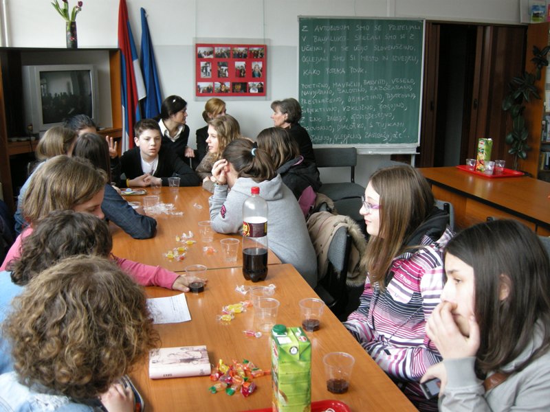 Srečanja učencev dopolnilnega pouka slovenščine in dijakov novomeške gimnazije so pogosta in vedno se jih veselimo. 22. marca so nas obiskali dijaki prvih in drugih letnikov, že maja jim bomo obisk vrnili.