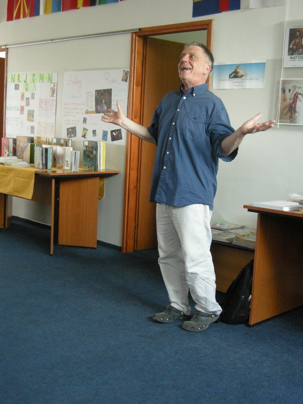 V sredo, 10. junija, smo se zbrali v prostorih Društva Slovencev Triglav. Že pred tem smo se pri pouku pripravljali na obisk Andreja Rozmana Roze, naredili smo dva plakata, postavili smo tudi razstavo njegovih del. Andrej Rozman Roza ni le pesnik in pisatelj, ampak tudi dramatik in igralec, zato je njegov nastop vedno zanimiv. Tudi tokrat je pritegnil pozornost poslušalcev.