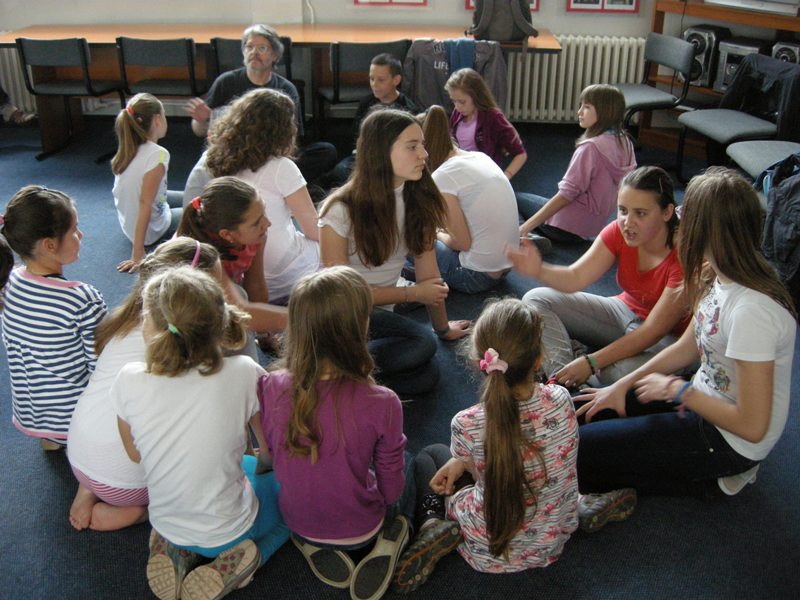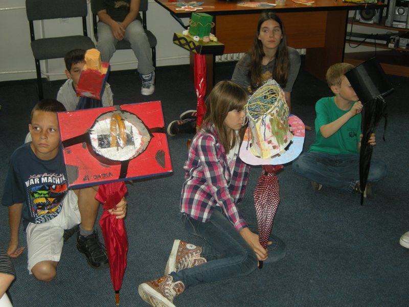 Jelena Sitar in Igor Cvetko, lutkarja iz Ljubljane, sta z učenci dopolnilnega pouka slovenščine iz Banjaluke in Slatine pripravila lutkovno delavnico. V petek so ves dan ustvarjali maske in lutke, v soboto so si razdelili vloge in vadili, v nedeljo so že pokazali rezultate svojega dela. Nastala je predstava Moj dežnik je lahko balon, otroci so jo odigrali pred polno dvorano gledališča Jazavac. Pravljica Ele Peroci nas je popeljala v deželo Klobučarijo. Nastopalo je več kot trideset otrok, predstavo je spremljala glasba – zazveneli so zvoki harmonike, kitare in violine. Fotografije povedo več kot besede, saj je težko opisati, kaj vse so morali otroci izdelati in kaj so se morali naučiti, da so predstavo lahko odigrali.