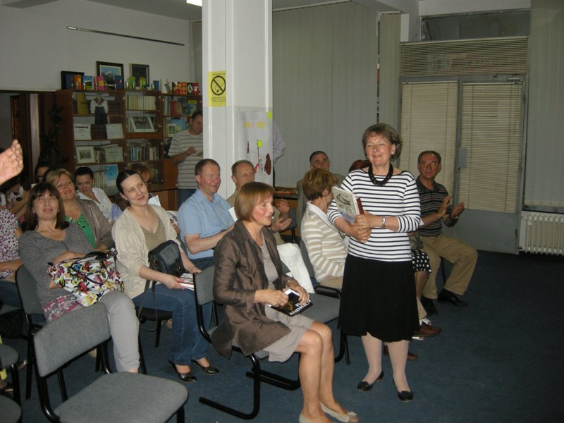 Anja Štefan je bila že v sredo zvečer naša gostja na prireditvi za otroke, zdaj pa je pripravila še program za odrasle. Pripovedovalski večeri za odrasle so v Sloveniji zelo priljubljeni, Anja Štefan vodi festival Pravljice danes, ki je nastal iz prepričanja, da se je tudi sodobnega človeka mogoče dotakniti z zgodbo, če je dobro povedana in če je vsebina poslušanja vredna. Naša gostja je razložila, kaj vse sporočajo ljudske pravljica in kako pomembno je bilo pripovedovanje v preteklosti. Zdaj se pomena pripovedovanja spet zaveda vedno več ljudi. Anja Štefan je pisateljica, pesnica in pripovedovalka, zato nas je najprej nagovorila s svojimi pesmimi. Čeprav so napisane za otroke in objavljene v slikanicah, v njih tudi odrasli lahko najdemo sporočilo za današnji čas. Prav tako je s pravljicami. Povedala je eno o kralju Matjažu in eno s pomenljivim naslovom Vsem ljudem nikoli ne ustrežeš. Anja Štefan se je predstavila kot vsestranska ustvarjalka in pripovedovalka, na koncu smo skupaj celo zapeli.