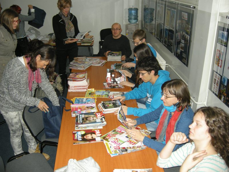 Pred najmlajšimi učenci dopolnilnega pouka slovenščine so odprle Pravljični kovček, v katerem se je skrivala pravljica Trije prašički. Knjižničarka Lidija Kozelj jo je odigrala z lutkami, otrokom pa je pokazala več izdaj te priljubljene pravljice in tudi poučno knjigo o pujsih. Božena Kolman Finžgar je prinesla s seboj veliko slikanic, v katerih je natisnjena pravljica Rdeča kapica v različnih jezikih. Opazovali smo, kako je Rdeča kapica oblečena, kaj nese babici in kako se reši iz volkovega trebuha. Presenečeni smo ugotovili, kako različne so pravljice. Slovenska Rdeča kapica nese babici potico in vino, srbska pa juho in kolač. Spoznali smo italijansko slikanico, v kateri je Rdeča kapica napisana in narisana v obliki stripa, in še mnoge druge – tudi slikanico, ki je bolj kot otrokom namenjena odraslim. Tudi srednješolci in odrasli smo si ogledali, kako pomembne so pri natisih pravljic kulturne razlike, izvedeli pa smo še, kakšne so možnosti izposoje in branja e-knjig. Katja Bevk nam je predstavila projekt Biblos in spletno stran e-knjiga.si.