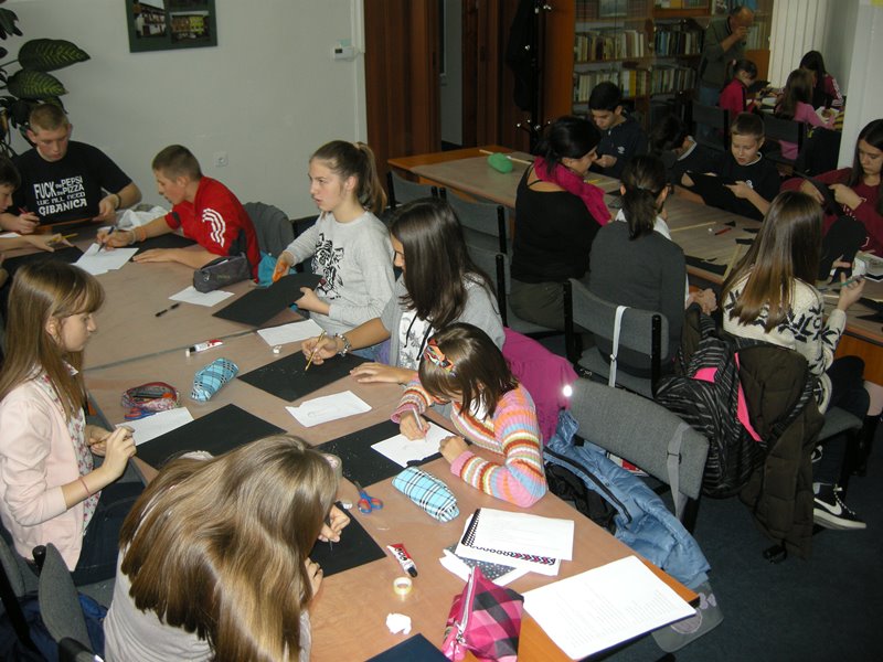 Za osnovnošolce sta pripravili delavnico Knjižnica – vesolje zakladov. Izdelovali smo senčne lutke za predstave, ki jih bomo imeli ob prihodu dedka Mraza. Najmlajši so naredili ptico in drevesa za dramski prizor Zakaj je smreka tudi pozimi zelena, druga skupina osnovnošolcev je pripravila lutke za igro Štirje godci, tretja skupina pa je ob izdelavi lutk spoznavala znano slovensko pravljico Peter Klepec. V prijetnem vzdušju so nastale zanimive lutke in kar takoj smo se lahko preskusili v igri. Senčno gledališče bo nova popestritev naših dejavnosti, saj je dokazano, da ima umetniško ustvarjanje velik vpliv na govorni razvoj otrok.