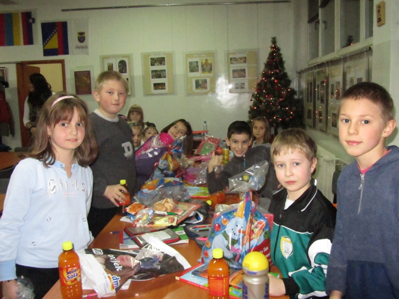 Po videu pa jih je nagovoril še slovenski Dedek Mraz. Tako so pričakali Dedka Mraza tako v Banja Luki kot Slatini. Najmlajši so se daril še posebej razveselili, sploh ker jim je Dedek Mraz prinesel CD Maček Muri, ki ga z velikim užitkom poslušajo in pojejo pri vsaki uri. Vsi otroci so dobili po eno knjigo Ivanke Mestnik, poleg tega pa še polno sladkih, slanih in praktičnih radosti, ki so dokaz, da tudi slovenski Dedek Mraz ni pozabil nanje.