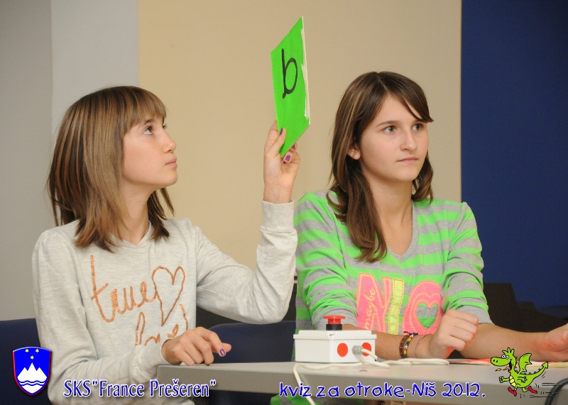 Slovenska kulturna skupnost “France Prešeren” iz Niša je že četrtič organizirala kviz za mladostnike od 12 do 16 let po vzoru na znane “Male sive celice”, kviz, ki pomeni učenje, sprejemanje zmag, porazov, vzponov in padcev.