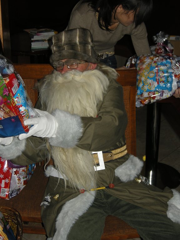 V četrtek, 12. decembra, smo se zbrali v hotelu Ćetojević. Učenci dopolnilnega pouka slovenščine so pripravili program, potem pa so glasno poklicali dobrega moža, ki ni prišel prazen. Velik koš daril je prinesel in za vsakega otroka je bila poleg sladkarij še knjiga. Dedek Mraz je imel dolgo belo brado, sivo kučmo in debel kožuh - bil je prav tak, kot ga poznamo iz slovenske pesmice.