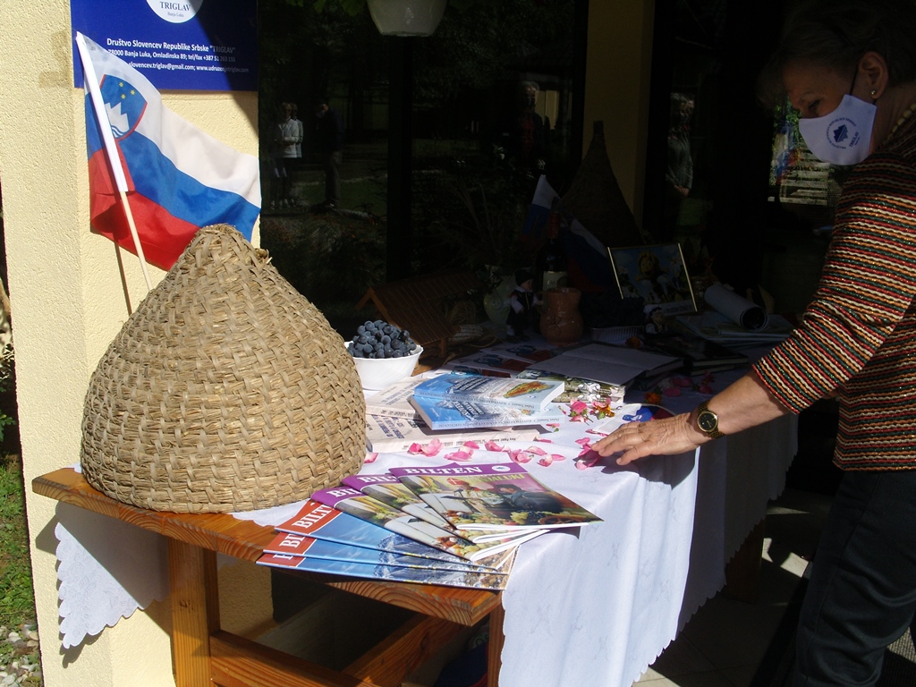 Tudi stojnica ni izostala. Na njej so bili izloženi naši letni bilteni, bilteni To smo mi, ki jih pišejo učenci dopolnilnega poka slovenščine in naše dvojezične knjige za odrasle in dvojezične knjige za mladino. Vse to je bilo natisnjeno v organizaciji našega društva.Trudimo se, da je naša stojnica vsako leto drugačna, da na njej prikažemo nekaj kar je vredno spomina za vse nas. Tako smo se letos, ko je naše življenje ogroženo z virusom CORONE, spomnili na 20. maj, Dan čebel. Na začetku pandemije je organizator Ambasada Republike Slovenije v BiH in ob logistični pomoči našega društva sodeloval v jutranji oddaji na RTV Republike Srbske v temi o čebelarstvu, pomebnosti čebel, o medsebojnem sodelovanju čebelarjev in povezavi s čebelarji širom sveta. V oddaji so sodelovali ambasador Republike Slovenije v BiH gospa Zorica Bukinac, prof. Goran Mirjanić iz katedra za čebelarstvo na banjaluški fakulteti, predsednik čebelarskega društva v Banjaluki Damir Barašin in gospa Duška Radaković.