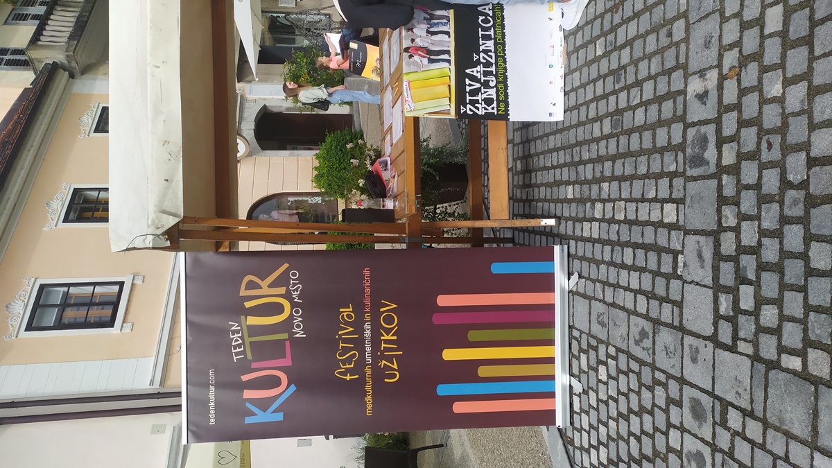 Petkov deževni dan je minil, a začetek sobotnega dne ni obetal vremenske spremembe, vendar sta veter in sonce pregnala oblake. Na centralnem delu mestnega trga so tokrat bile postavljene stojnice različnih dobrot, brez dežnikov smo se sprehodili po starem delu mestu in uživali v nastopu najmlajših. Posebnost te manifestacije je bila v atriju Hiše kulinarike z nazimom, ponudba Žive knjižnice. V njej smo si lahko obiskovalci namesto knjig za 20-minutni klepet „izposodili“ sogovornike z (ne)navadnimi usodami. Med „knjigami“ so bile osebe z izkušnjami vojne, ljubljenec vegetarjanstva, begunec iz Avganistana, Rominja, venezuelska Slovenka idr.