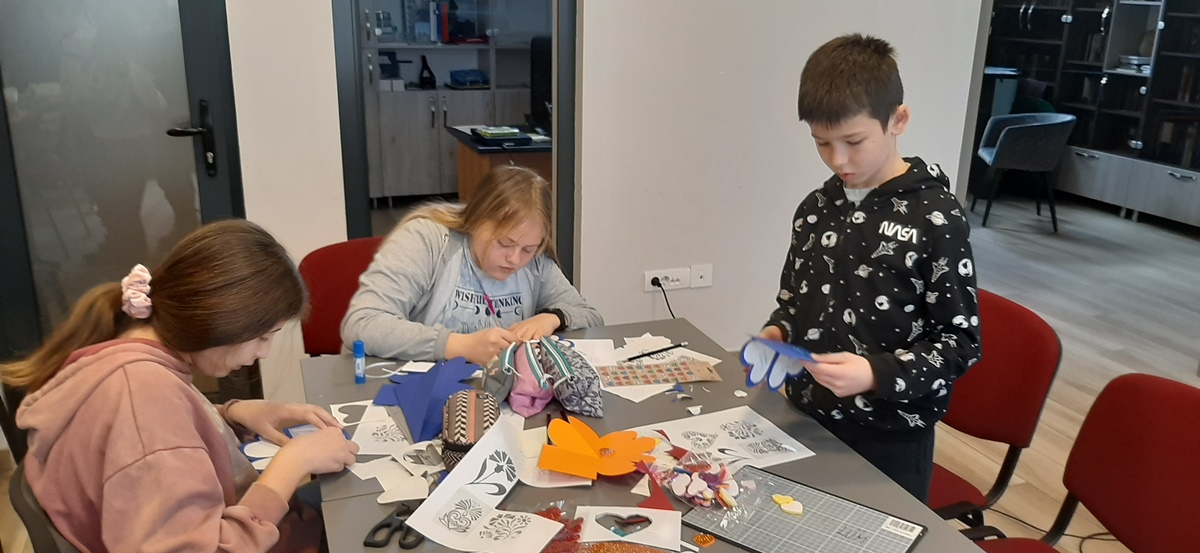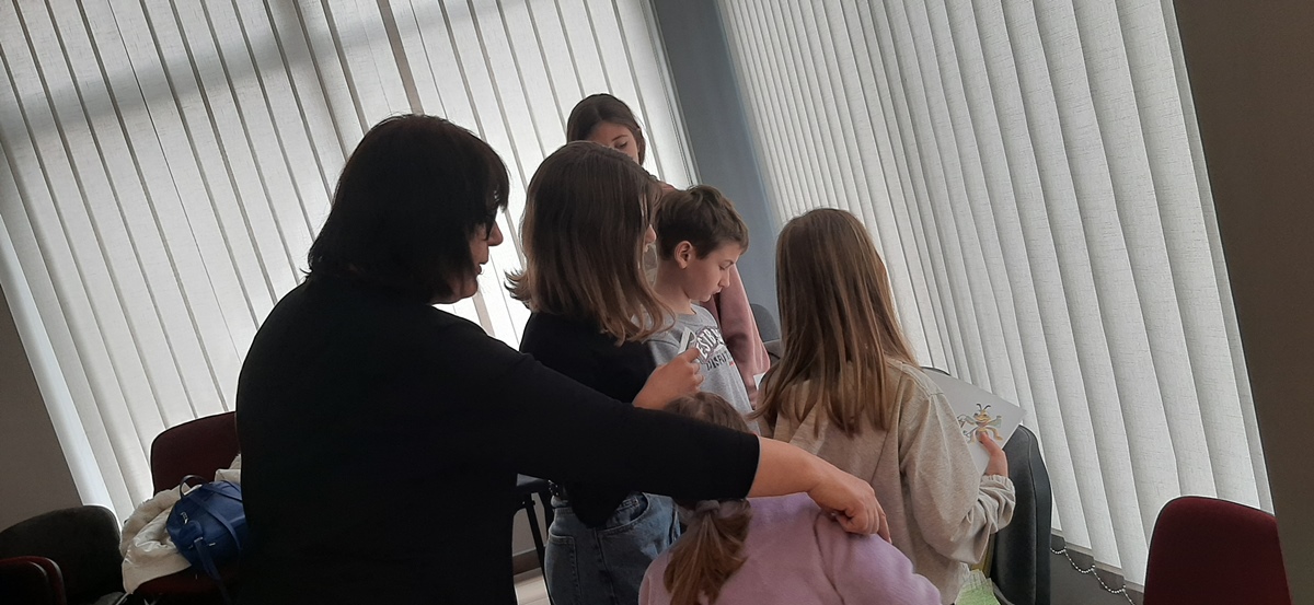 Dopoldne je bila za osnovnošolce organizirana likovna delavnica pod vodstvom likovne pedagoginje Aleše Sušnik Škedelj iz Novega mesta. Učenci so izdelovali voščilnice za materinski dan. Izdelali so voščilnice s slovenskim motivom – tj. srce. Pred začetkom dela so si ogledali kratek film o materinskem dnevu, se naučili, kakšna voščila napišemo mamam, nato pa pričeli z delom. Izdelava ni bila preprosta, na koncu pa so nastali zelo lepi izdelki.