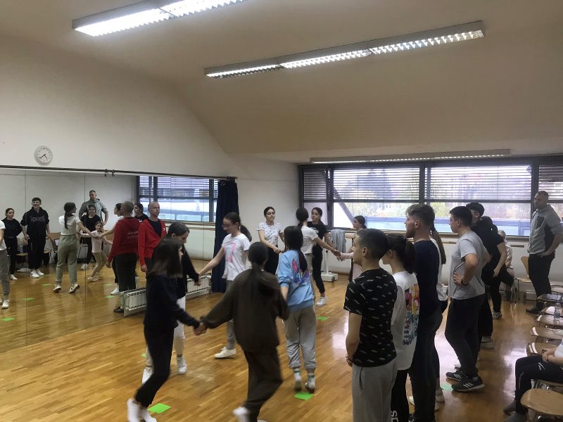 Dan prej, 13. aprila, so folklorniki po prihodu v Novo mesto imeli načrtovano vajo v popoldanskih urah v Kulturnem centru »Janeza Trdina« ter vajo z dr. Tomažem Semetingerjem, avtorjem aktualne koreografije, ki jo izvajajo. Izvedene vaje so bile velikega pomena za skupino in pripravo na nastop, realizirane pa so bile v sklopu sodelovanja in podpore Društva za razvijanje prostovoljnega dela iz Novega mesta, delo društev slovenske manjšine. Mladi folkloristi iz Banja Luke in Slatine so se med obiskom imeli priložnost seznaniti z videzom in glavnimi znamenitostmi starega mestnega jedra Novega mesta, obiskali pa so tudi kmetijsko posestvo Srednje biotehniške šole Grm, kjer so spoznali njihov način dela in možnosti pridobivanja znanja za svoje dijake in študente.