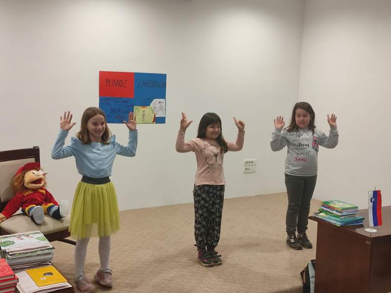 Ob zaključku svojega nastopa je Primož Suhodolčan učencem dopolnilnega pouka slovenščine podelil potrdila o obiskovanju pouka ter knjižne nagrade, ki jih je prispevalo Društvo Bralna značka Slovenije, za kar se jim lepo zahvaljujemo.