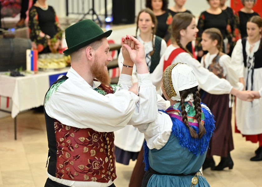 V programskem delu prireditve je najprej nastopil mešani pevski zbor »Davorin Jenko«, ki je izvedel slovensko himno »Zdravljico« in pesem »Mlade oči« avtorja Jura Robežnika, nato pa je sledila zanimiva izvedba slovenske ljudske pesme »En hribček bom kupil«, ob koncu pa so člani zbora nazdravili prisotnim s kozarcem vina. Po zboru je nastopila otroška folklorna skupina s spletom slovenskih plesov, ki je požela velik aplavz občinstva.