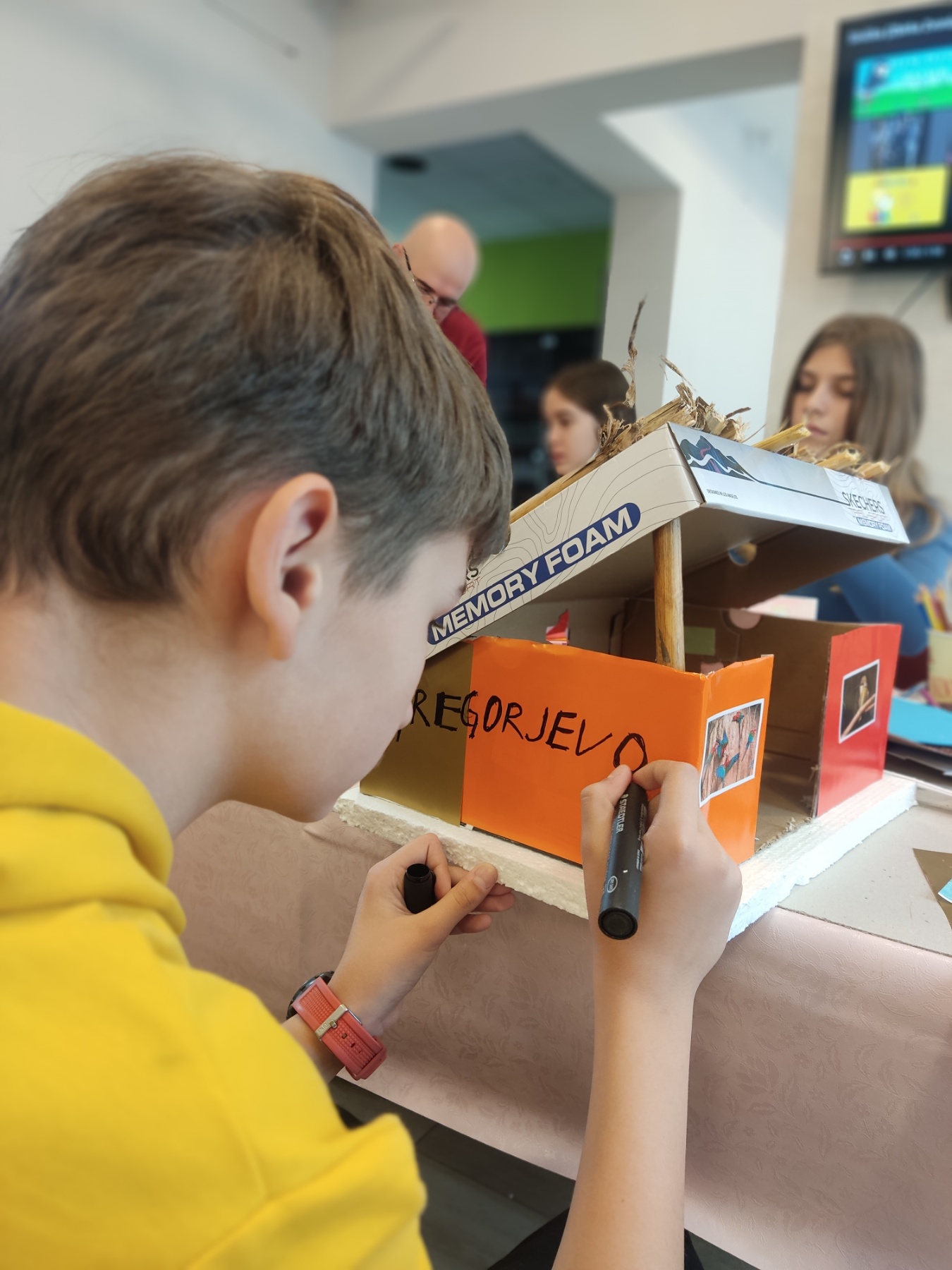 Po teoretičnem delu je sledilo ustvarjanje gregorčkov. Učenci so se seboj prinesli material za izdelavo gregorčkov in nastali so zelo lepi izdelki. Pri izdelavi nam je pomagal Lukin oče, Saša Perić.