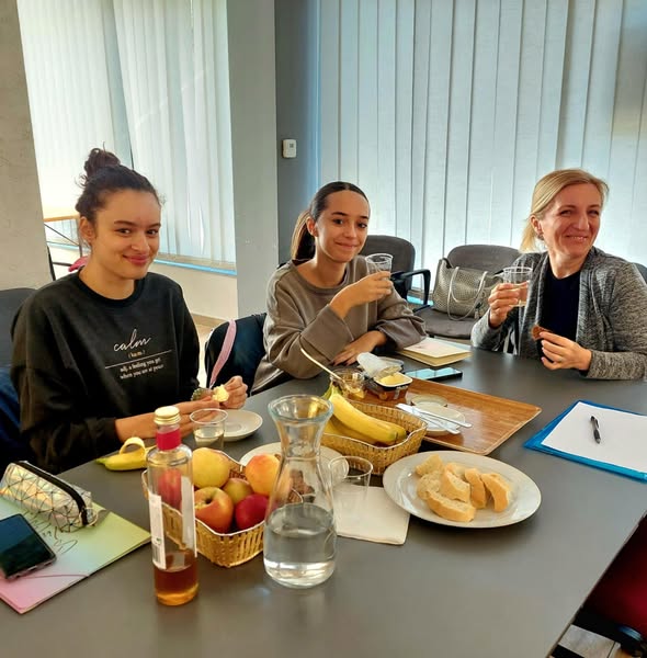 Udeležencem DPS sem tako iz Slovenije, in sicer iz Prekmurja, prinesla in jih pogostila z lokalno slovensko hrano. Jedli so domač med znanega prekmurskega čebelarja, bel mlečni kruh, ki ga v Prekmurju imenujemo vrtanek (pletenica), domača bio jabolka, mleko in maslo pa je bilo iz trgovine. Starejšim udeležencem sem namesto mleka ponudila domač bio sok iz črne mete, nad katerim so bili navdušeni, zato sem jim predstavila tudi prav posebno socialno kmetijo na Goričkem v Prekmurju, ki se imenuje Korenika, od koder sem prinesla večino domačih dobrot. Z mlajšimi udeleženci pa smo si ogledali dva videa, ki na zabaven in poučen način prikazujeta pridelavo vseh petih sestavin tradicionalnega slovenskega zajtrka.