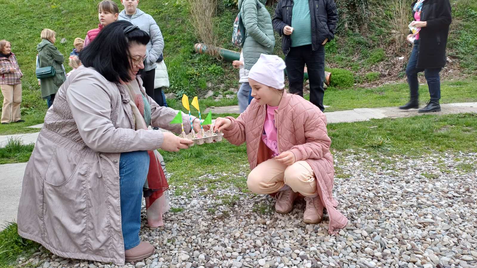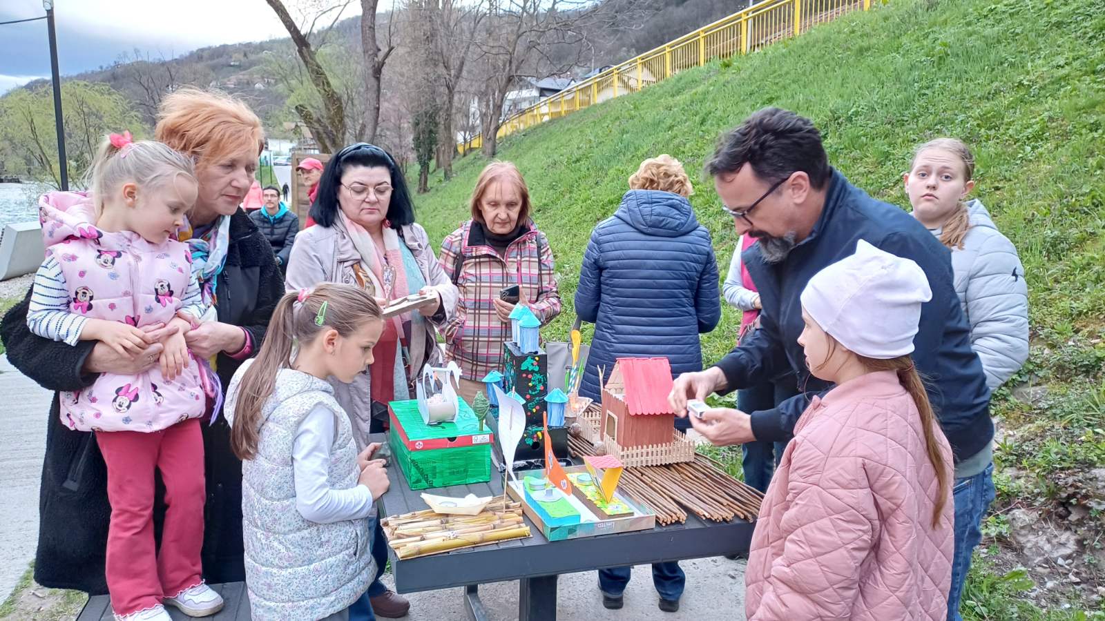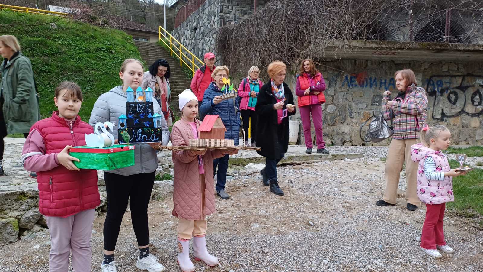 Zato smo se v nedeljo, 23. marca 2025, ob 17.30 zbrali ob reki Vrbas nekateri člani društva Triglav, starejši udeleženci dopolnilnega pouka slovenščine, predvsem pa mlajši učenci, katerih naloga je bila, da doma, iz okolju prijaznih materialov, izdelajo ladjice – gregorčke. Učenke so prinesle domiselne, s polno domišljije in otroške kreativnosti izdelane ladjice, opremljene s čajnimi lučkami. Ko je sonce pričelo zahajati, smo prižgali lučke, vsak otrok je vzel v roke svojega gregorčka in ga s ponosom podal predsedniku društva Mladenu Luniću, ki je opremljen z visokimi gumijastimi škornji ponesel vsako ladjico s prižgano lučko na sredino reke Vrbas in jo spustil v deročo vodo. Zbrani smo bili priča čudovitemu prizoru pisanih ladjic, ki jih je reka nosila sem ter tja …