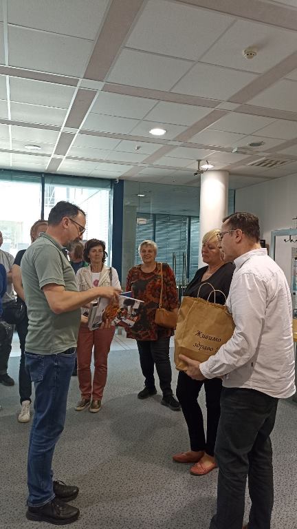 Naš izlet v Porabje smo pričeli v sredo, 14. maja 2025, naš prvi postanek pa je bila Pokrajinska in študijska knjižnica v Murski Soboti. Je osrednja območna knjižnica za Mestno občino Murska Sobota, to je za 12 občin (med drugim Beltince, Hodoš, Kuzmo, Moravske Toplice itd.) in krajevna knjižnica za Prekmurje, Prlekijo in Porabje. Knjižnica ima oddelek za učenje, splošno izobraževanje in mladino ter zbira slovensko tiskano gradivo, znanstveno, strokovno in jezikoslovno literaturo ter drugo gradivo o regiji, zlasti starejše slovensko pomursko tiskano gradivo in literaturo v madžarskem jeziku. Zagotavlja reden dotok slovenske literature v slovensko Porabje na Madžarskem in izmenjuje znanstveno literaturo z madžarskimi in avstrijskimi knjižnicami. Naša gostitelja, knjižničarka Metka Celec in namestnik direktorice Albert Halász, sta nam na kratko predstavila delo knjižnice in številne projekte, v katere je knjižnica vključena.
