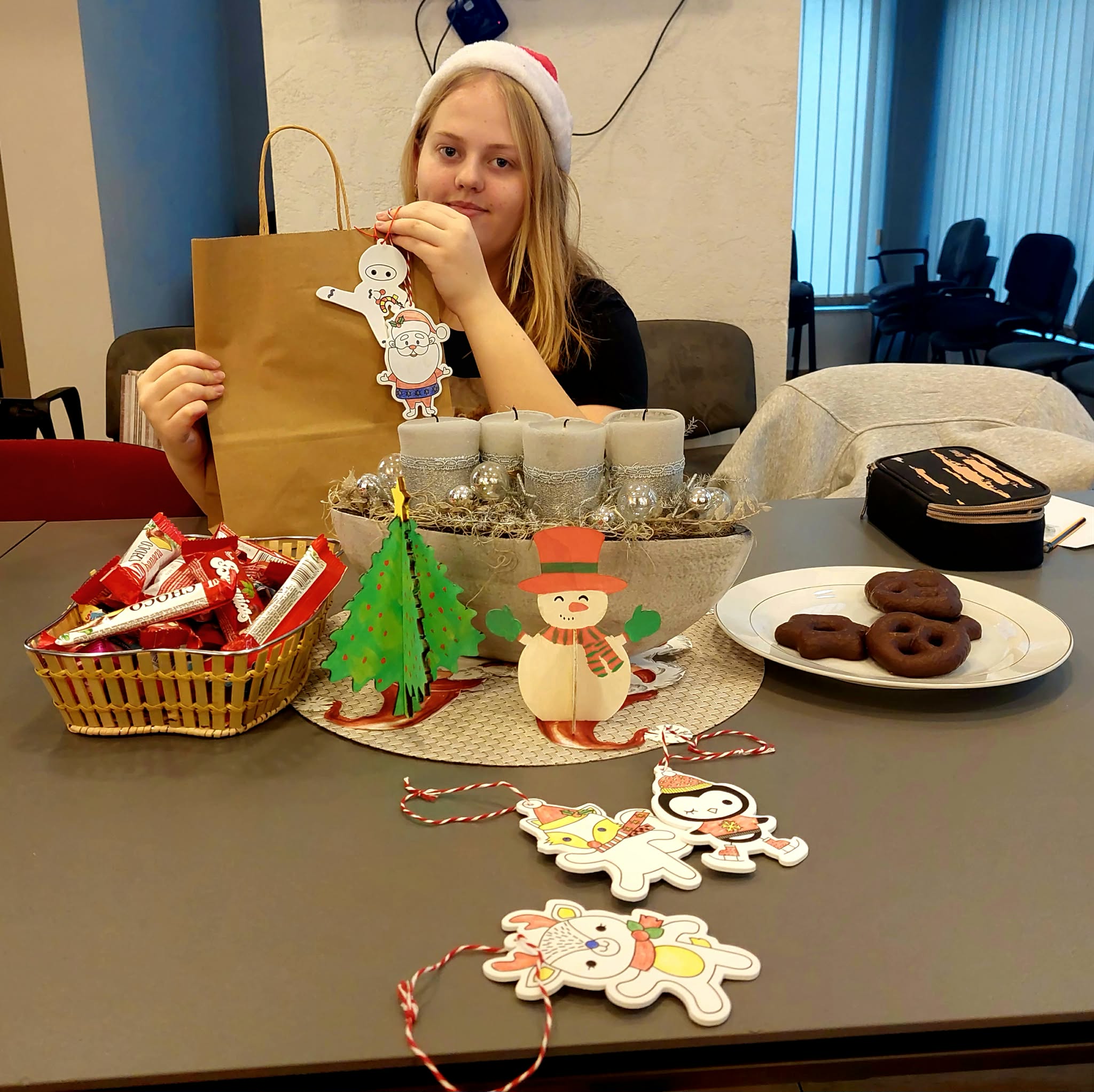 Pogovarjali smo se o slovenski tradiciji decembrskih obdarovanj, mlajši učenci so pobarvali vse tri dobre decembrske može, Miklavža, Božička in dedka Mraza, starejši učenci pa so sestavili okraske in praznično smo okrasili prostor Društva Triglav, v katerem imamo pouk. Poslušali smo božične pesmi, pili čaj in grizljali s čokolado oblite medene piškote. Slovenski Miklavž pa tudi letos ni pozabil na darila. Vsak učenec je bil obdarovan, saj je tudi letos učiteljici Metodi bila zaupana pomembna naloga, ki pravi, da se mora slovenski Miklavžev duh razširjati na vse kraje, kjer se otroci pridno učijo slovenščino. In tako bo tudi v prihodnje.