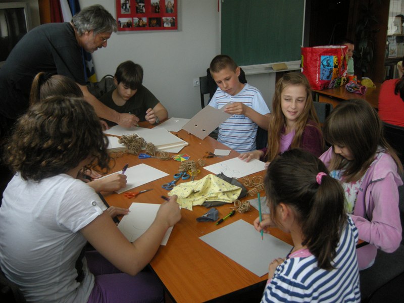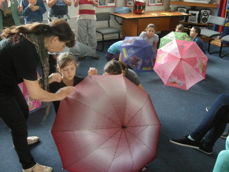 Jelena Sitar in Igor Cvetko, lutkarja iz Ljubljane, sta z učenci dopolnilnega pouka slovenščine iz Banjaluke in Slatine pripravila lutkovno delavnico. V petek so ves dan ustvarjali maske in lutke, v soboto so si razdelili vloge in vadili, v nedeljo so že pokazali rezultate svojega dela. Nastala je predstava Moj dežnik je lahko balon, otroci so jo odigrali pred polno dvorano gledališča Jazavac. Pravljica Ele Peroci nas je popeljala v deželo Klobučarijo. Nastopalo je več kot trideset otrok, predstavo je spremljala glasba – zazveneli so zvoki harmonike, kitare in violine. Fotografije povedo več kot besede, saj je težko opisati, kaj vse so morali otroci izdelati in kaj so se morali naučiti, da so predstavo lahko odigrali.