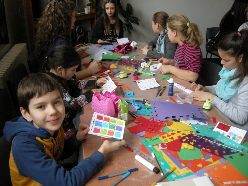 Tudi v soboto, 12. decembra, so ves dopoldan ustvarjali. Delavnice so potekale v prostorih Društva narodnih manjšin, vodili so jih Alenka, Ivana, Tamara, Barbara in Franci. Učenci so iz jabolk, piškotov in smetane pripravili okusno slaščico in jo kar takoj pojedli. Iz papirja so naredili škatlice, v katere bodo položili bombon ali majhno darilo. Izdelali so še koledarje za leto 2016 in zvezdice iz papirja, s katerimi bodo lahko okrasili stanovanje. Decembrske delavnice so že tradicionalne, vsako leto ustvarimo kaj novega in tako pričaramo novoletno vzdušje.