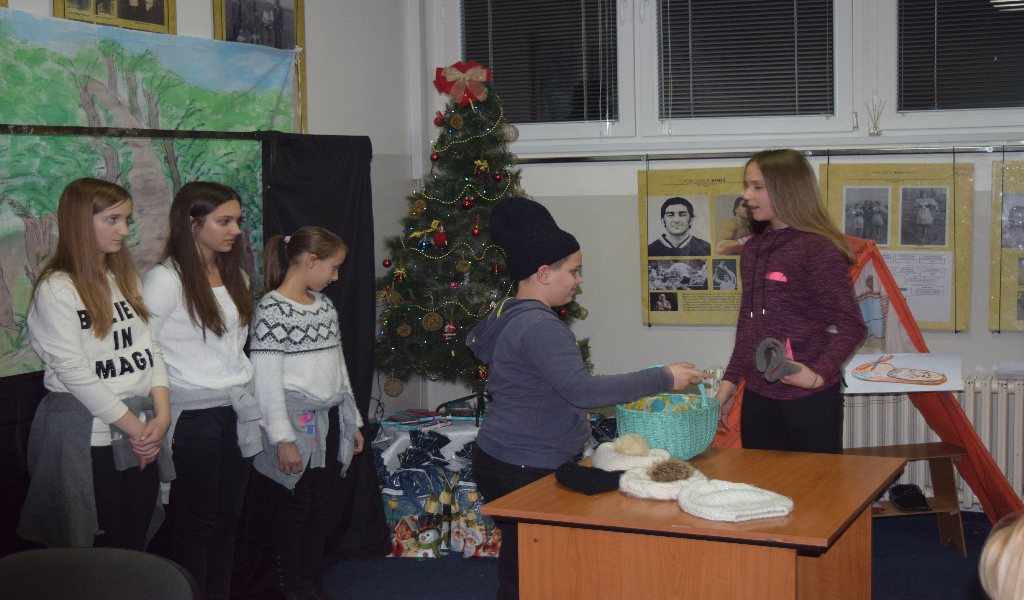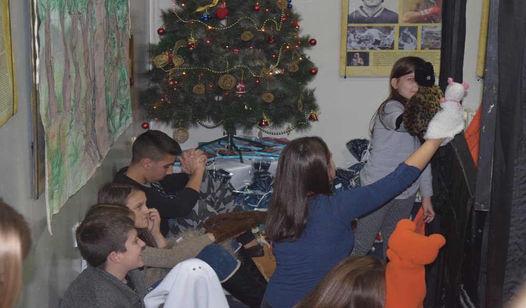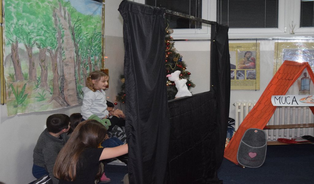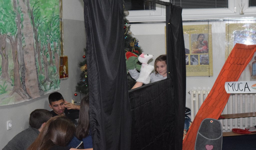 V sredo, 14. decembra, je bila smrečica v Klubu narodnih manjšin že okrašena, otroci pa so nestrpno pogledovali, kdo je pod smrečico pustil darila. Preden smo poklicali dedka Mraza, smo si ogledali lutkovno predstavo Sapramiška ter igri Muca Copatarica in Hvaležni kipci. Z lutkovno predstavo o miški, ki se ji je zlomil zob, so nas razveselili učenci dopolnilnega pouka iz Slatine. Miška se je opogumila in odšla k zobozdravniku, zato smo na koncu predstave vsi skupaj zapeli pesmico Moji beli zobki. Ob pravljici o Sapramiški odraščajo vedno nove generacije otrok, tako priljubljena kot pogumna miš pa je tudi muca, ki otrokom, ki ne pospravijo svojih copat, copate odnese. Igro Muca Copatarica so odigrali naši najmlajši učenci, starejši učenci pa so nastopili v predstavi Hvaležni kipci.