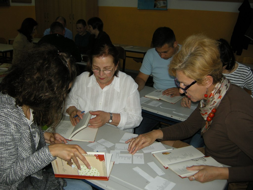 Poslanico ob 2. aprilu je pripravila Ruska sekcija Mednarodne zveze za mladinsko književnost. Pisatelj Sergej Mahotin jo je naslovil Rastimo s knjigo. Besedilo smo prebrali za uvod v Noč knjige. Dogodek smo si zamislili kot medgeneracijsko branje, najmlajši bralec je bil osnovnošolec, najstarejša bralka upokojenka. Učenci so dobili razrezane pesmi Saše Vegri, v skupinah so iskali prave naslove pesmim in jih sestavljali v celoto. V zbirki pesmi Naročje kamenčkov so izbrali pesmi, ki so se jih ob prvem branju najbolj dotaknile – nekatere zaradi sporočila, druge zaradi humorja, besednih iger in nežnosti. Vsak se je odločil za eno in jo predstavil. Pesmi Saše Vegri nagovarjajo bralce različnih starosti, zato so bile odlična izbira za medgeneracijsko branje. Hvala društvu Bralna značka Slovenija, ki nam je knjige Naročje kamenčkov podarilo. Tako bodo učenci dopolnilnega pouka slovenščine še naprej lahko uživali ob dobri poeziji.
