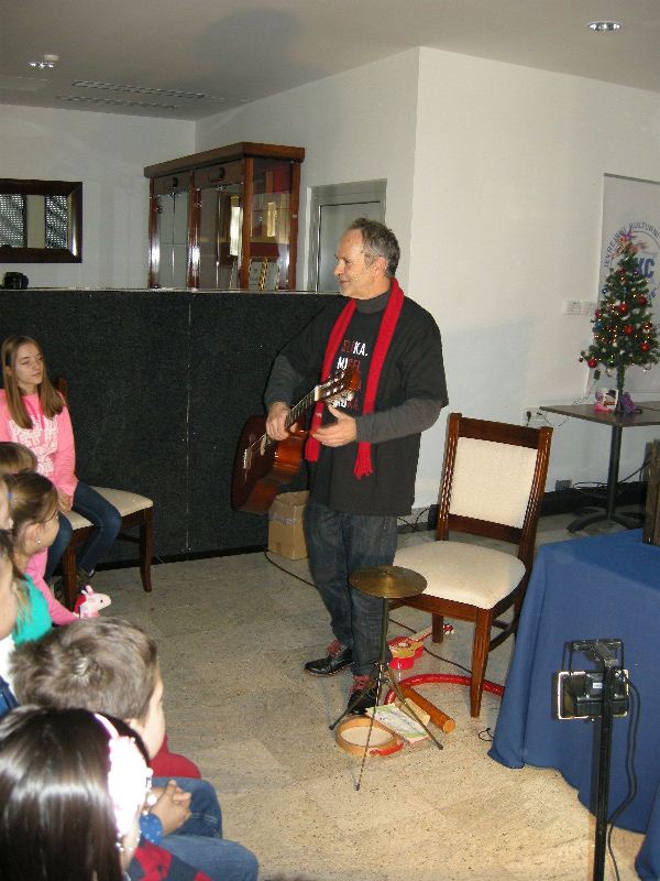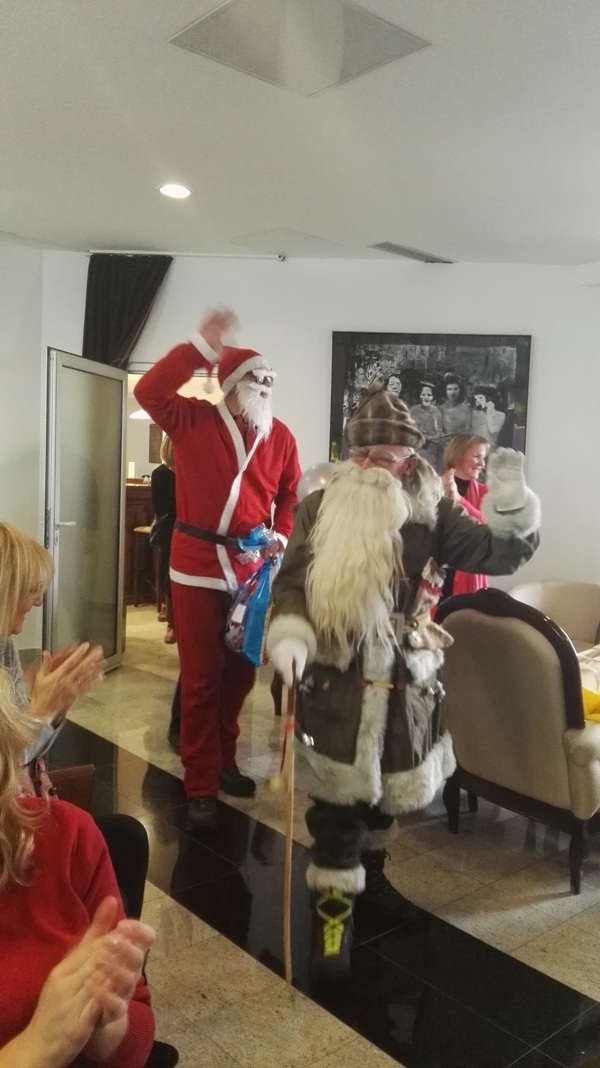 Po kulturnem programu smo poklicali dedka Mraza. Ni prišel sam, z njim je bil tudi Božiček, v dvorani pa sta ga počakala dva palčka pomagalčka. Palčka sta poskrbela, da nihče izmed otrok ni ostal brez darila. V velikih paketih so bile poleg slaščic tudi knjige, za njih je zahvaljujemo Bralni znački Slovenije in založništvu Buča. Zgodbe v slovenščini bodo otroke spremljale v prihodnjem letu, ob njih se bodo nekateri naučili prve slovenske besede. Po sproščenem druženju z dedkom Mrazom in Božičkom smo si zaželeli veliko lepega v letu, ki prihaja.