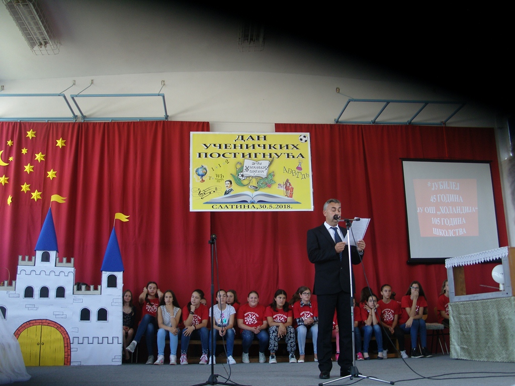 S prireditvijo so obeležili 105 let šolstva v Slatini in 45. rojstni dan Osnovne šole Holandija. Predstavili so se učenci vseh razredov, od prvošolcev do devetošolcev. Slišali smo šolski pevski zbor in recitatorje, ogledali smo si dramski prizor Zmedena pravljica, prisluhnili smo šolskim anekdotam, najmlajši in malo večji so nas navdušili s plesom in ritmiko. V Osnovni šoli Holandija že dolgo poteka dopolnilni pouk slovenskega jezika in kulture. Naši učenci so se predstavili tudi na šolski prireditvi. Elena in Katja Lunić, Gabrijela in Martina Tavčar, Stefan Kuprešak ter Julijana Jakša so nastopili v kratkem prizoru Zakaj smo na svetu. Dragoceno je, če v okolju, v katerega so se Slovenci priselili pred skoraj stotimi leti, še slišimo slovenščino.