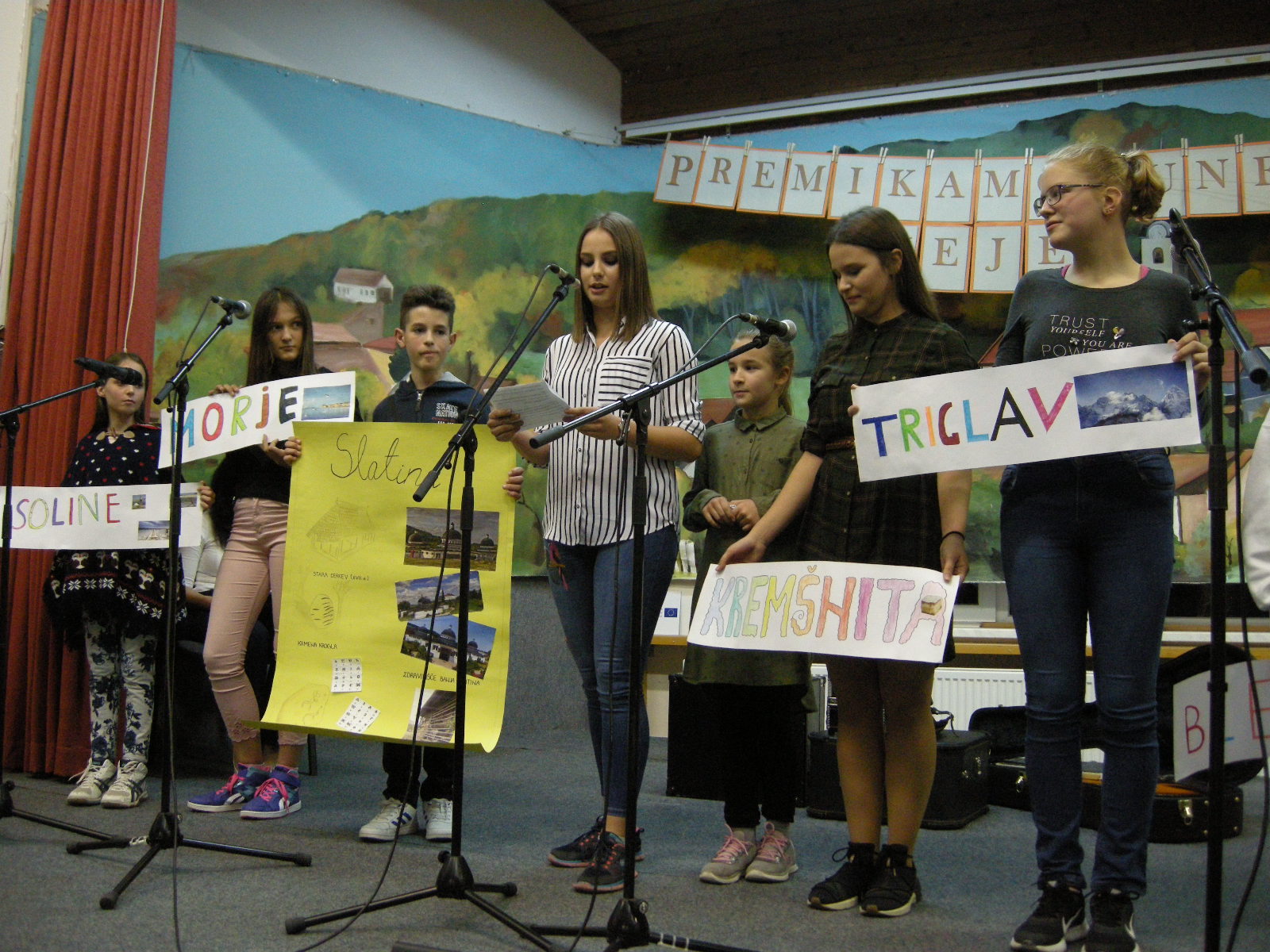 Še več časa za predstavitve je bilo v petek, 26. oktobra, ko smo se družili na Ekonomski in trgovski šoli v Brežicah. Pozdravila nas je ravnateljica šole Mojca Tomažin. Ves dopoldan je potekal bogat kulturni program, nastopila je tudi folklorna skupina Društva Slovencev Triglav Banjaluka. Tudi gostitelji, učenci in dijaki brežiških šol in OŠ Maksa Pleteršnika Pišece, so nam pripravili glasbene točke. Med nastopajočimi je bila Iva Potkonjak, ki je bila še preteklo šolsko leto učenka dopolnilnega pouka slovenščine v Banjaluki, zdaj pa obiskuje Gimnazijo Brežice. Gostje smo svoja mesta in društva predstavili na stojnicah, na delavnici smo popisali modre stole. Na temo Tudi moj dom je del Evrope smo ustvarjali že doma in zdaj smo si lahko ogledali fotografije, filme in likovna dela, ki so bila izbrana med poslanimi izdelki. Med njimi so bila tudi dela banjaluških učencev dopolnilnega pouka slovenščine.