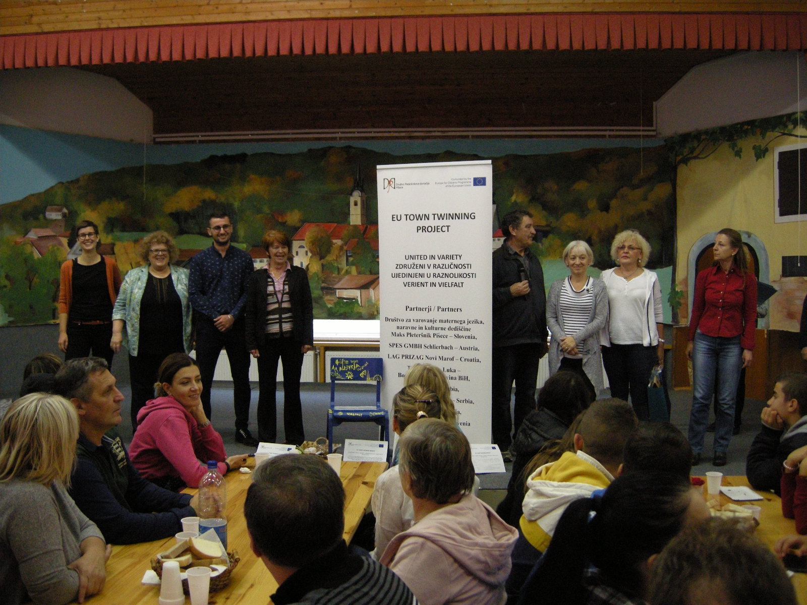 V četrtek, 25. oktobra, smo se zbrali v Pišecah, rojstnem kraju slovenskega jezikoslovca in slovaropisca Maksa Pleteršnika. Na uvodni prireditvi sta nas pozdravila Martin Dušič, vodja projekta, ter Ivan Molan, župan občine Brežice. Vsak partner projekta je spregovoril o okolju, iz katerega prihaja. Ana Marjanović je predstavila delo Društva Slovencev Triglav Banjaluka, nastopili so tudi učenci dopolnilnega pouka slovenščine iz Banjaluke in Slatine. Na prireditvi smo slišali slovenščino, angleščino, srbščino, hrvaščino, nemščino, makedonščino in celo francoščino. Člani vseh društev so veliko dela opravili že v preteklih dveh mesecih, cilj srečanja je bil, da se spoznajo in povežejo.