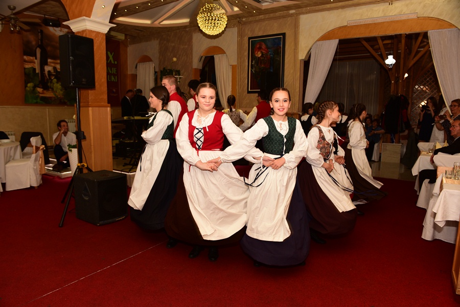 Začeli smo ob 19.30, tako kot je bilo predvideno. Prvi so nastopili člani pevskega zbora Društva Slovencev Triglav Davorin Jenko. Zbor, ki poje pod taktirko mag. Vanje Topić, je odlično popestril razpoloženje večera. Mladi plesalci folklorne skupine Društva Slovencev Triglav so odlično izvedli koreografijo, ki jo je pripravil njihov vodja Predrag Savić. Tudi Članica našega Izvršnega odbora Ana Marjanović je v lepem jedrnatem pozdravnem govoru obudila spomin na naše člane, ki so odšli v večnost, na ohranitev jezika, kulture in običajev, med katere sodi tudi proslavitev krsta vina.