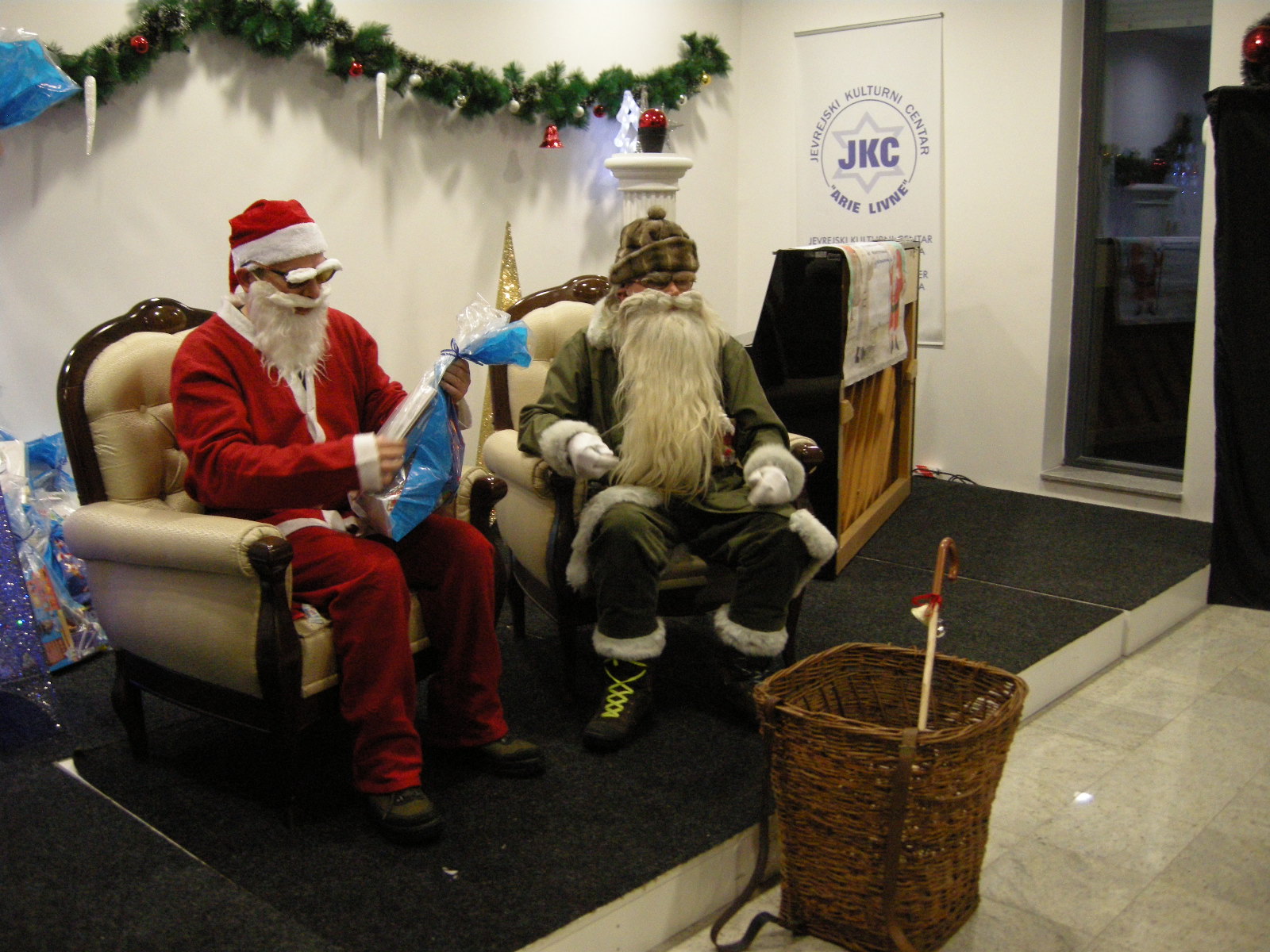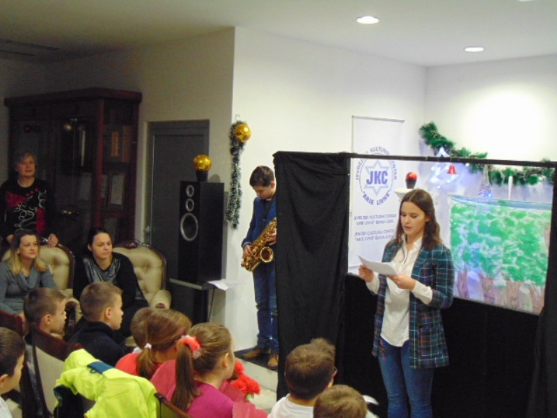 V petek, 14. decembra, je ves dan snežilo. Morda zato, da bi sani Božička in dedka Mraza lažje popeljale do Banjaluke. V Židovskem kulturnem centru so ju čakali otroci. Melodija saksofona, ki ga je igral Jovan Dimitrijević, je naznanila začetek prireditve. Program je vodila Elena Lunić. Prve so se predstavile tri učenke iz Slatine. Z lutkami so odigrale dramski prizor Zajček se je izgubil. Potem so nastopili naši najmlajši učenci. Čeprav so se slovenščino začeli učiti to šolsko leto, so pogumno stopili na oder. Metulje, rože, sonce in oblak smo spoznali v igri Štirje metulji. Učenci, ki obiskujejo pouk ob sobotah, so odigrali pravljico Kako sta Ana in Bojan potovala v mesto ali Vsem ljudem nikoli ne ustrežeš. Na oder sta stopila še Đorđe in Kosta Baroš. Ne hodita k pouku, a sta se naučila dve pesmi o dedku Mrazu. Po programu smo poklicali dedka Mraza. Ni prišel sam, z njim je bil Božiček in prinesla sta poln koš daril. To so trenutki, ki se otrokom vtisnejo v spomin, vedno jih spominjajo na čarobni čas otroštva.
