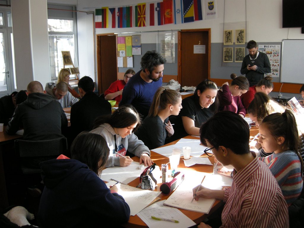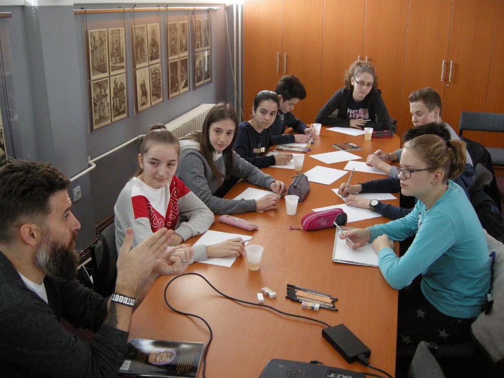 Razstava Pot knjige potuje po šolah in knjižnicah, 8. februarja je prišla v Banjaluko, z njo pa avtorja Žiga X. Gombač in David Krančan ter vodja projekta Tjaša Urankar. Gostje iz Slovenije so v soboto, 9. februarja, v Klubu narodnih manjšin v Banjaluki pripravili dve literarno-likovni delavnici. Spoznavali smo pot knjige od avtorja do bralca, še posebej pa strip - od ideje do zapisa besedila in risanja ilustracij. Prva delavnica je bila namenjena osnovnošolcem, druga srednješolcem.