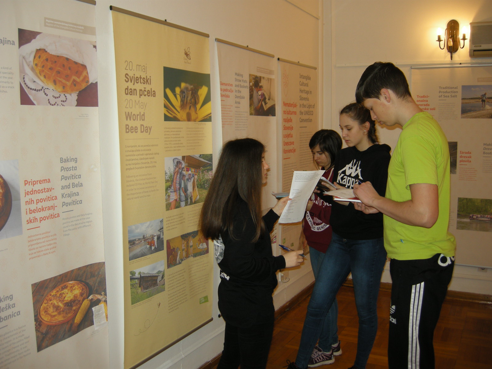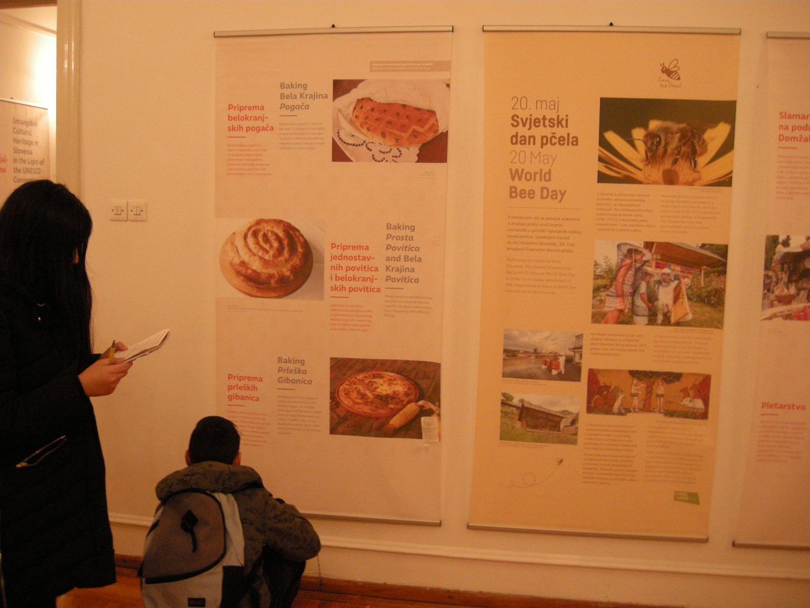 Na razstavi Nesnovna kulturna dediščina Slovenije v luči Unescove konvencije so na štiriindvajsetih panojih predstavljeni slovenski narodni običaji, rokodelstva in ostale tradicije. Dodan je še pano o 20. maju – svetovnem dnevu čebel, ki ga je na pobudo Slovenije razglasila Organizacija Združenih narodov.