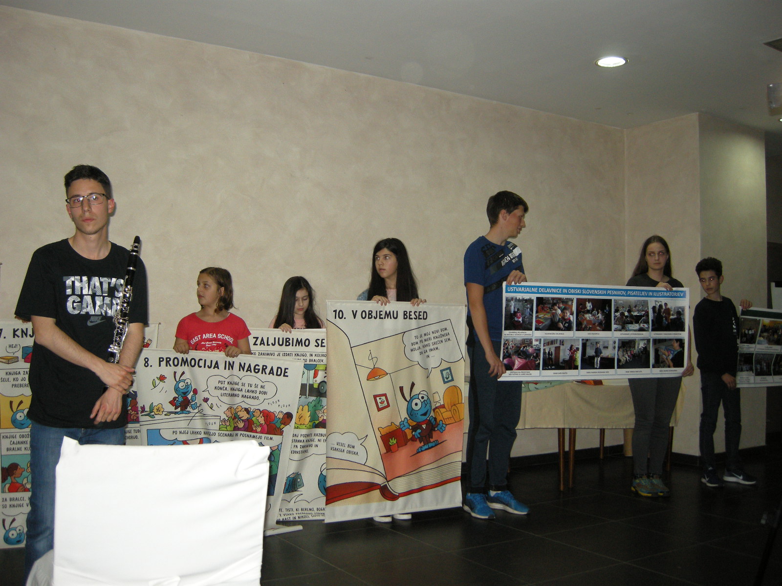 Zvečer so se vsi učenci predstavili s kratkim programom. Slišali smo nekaj o društvih, iz katerih prihajajo, vsaka skupina je zapela tudi eno slovensko pesem. Otroci in mladostniki so uživali v druženju, razšli smo se z obljubo, da se prihodnje leto spet srečamo.