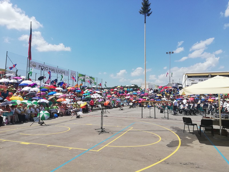 Drugog dana „Jubilarnog 50.susreta slovenačkih horova“, koji se održavaju na stadionu Osnovne škole „Ferdo Vesel“ u Šentvidu pri Stični, horsku pjesmu su uveličali nastupi limenog orkestra, mažuretkinje i posjeta predsjednika Slovenije, Boruta Pahora.