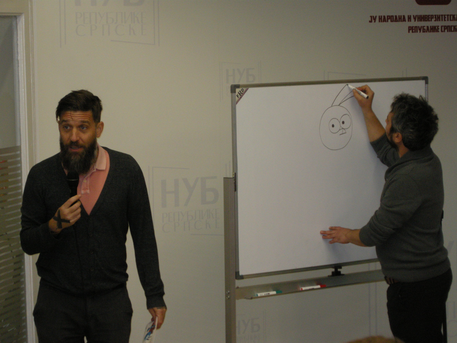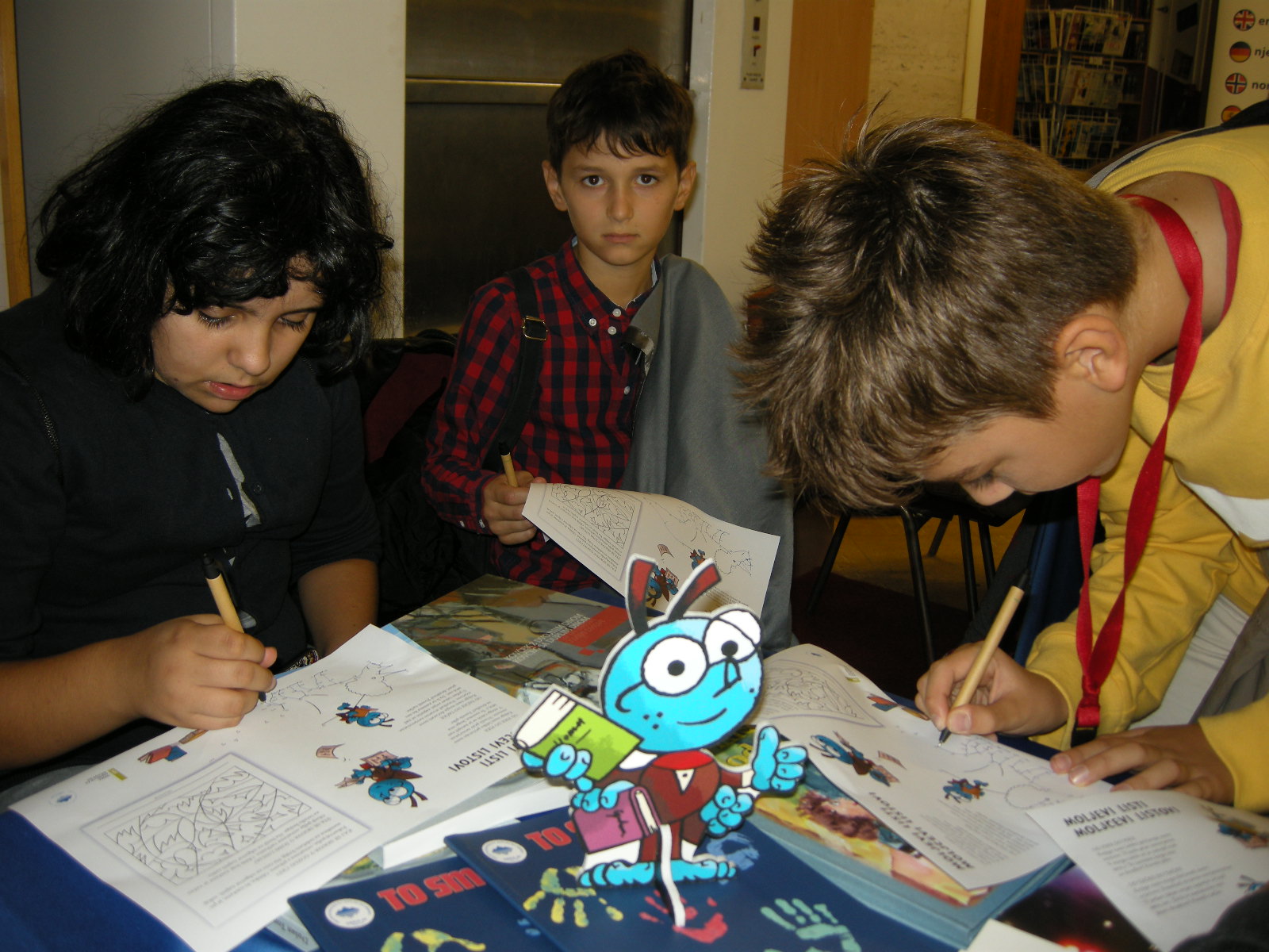 Pot knjige – Put knjige smo dopoldan predstavili na sejmu jezikov v Narodni in univerzitetni knjižnici v Banjaluki. Prvi so nas obiskali učenci 5. razreda Osnovne šole Branko Radičević z učiteljico Vanjo Perić. Avtorja Žiga X Gombač in David Krančan sta jim predstavila pot knjige od avtorja do bralca, učenci pa so reševali delovne liste. Ves dopoldan sta se avtorja srečevala z mladimi bralci, ki so z zanimanjem prisluhnili pripovedi o knjižnem molju. Ob 13.00 sta slovenska avtorja nastopila na prireditvi, ki je v Narodni in univerzitetni knjižnici združila govorce desetih evropskih jezikov: srbščine, nemščine, angleščine, francoščine, ruščine, grščine, španščine, italijanščine, češčine in slovenščine. Cilj evropskega dne jezikov je poudariti pomen večjezičnosti in eden izmed jezikov, ki zazvenijo na prireditvah v Banjaluki, je tudi slovenščina.