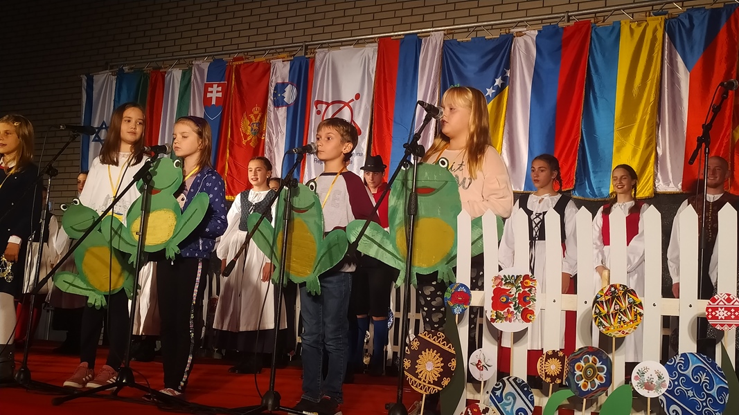 Društvo Triglav je odprlo Revijo. Nastopili so učenci dopolnilnega pouka slovenščine in Otroška folklorna skupina. Najmlajši učenci dopolnilnega pouka slovenščine so se predstavili s pesmico o žabah. Na teritoriju, kjer leži Ljubljana, glavno mesto Slovenije, je bilo nekoč močvirje, a v močvirju je vedno polno žab. Ljubljančane danes imenujejo Žabarji, in ni čudno, da je napisano veliko pesmi o žabah. Otroška folklorna skupina, ki jo vodi Predrag Savić se je predstavila s plesi iz Notranjske in Dolenjske.