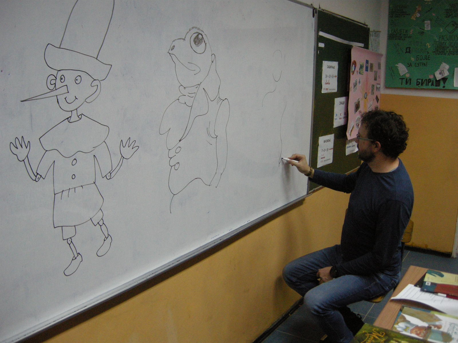 Slovenski ilustrator Peter Škerl se je v četrtek, 14. novembra, predstavil učencem dopolnilnega pouka slovenščine.