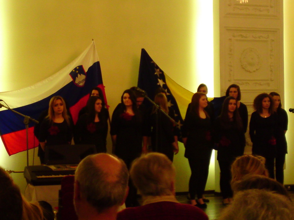 Ministrica za Slovence u pograničnim područjima i po svijetu Tina Komel se obratila prisutima i pozdravila ih. Osim toga, pozdravni govor je održao i ambasador Republike Slovenije u Sarajevu Andrej Grasselli. Na svečanoj akademiji su nastupili dječiji hor iz Novog mesta, učenici dodatne nastave slovenačkog jezika iz Tuzle, te KUD Bosna, koji su nam zaplesali vijenac slovenačkih narodnih plesova.