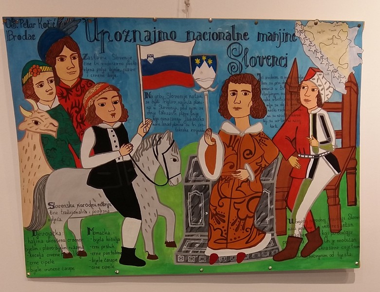 Izložba obuhvata 16 ručno rađenih kreativnih panoa, a svaki predstavlja po jednu nacionalnu manjinu kroz različite segmente - istorija, umjetnost, kultura i dr. Do kraja decembra 2015. godine, ista izložba će biti upriličena i u Ministarstvu prosvjete i kulture Republike Srpske, a povodom posjete pobjedničkih ekipa, ovog takmičenja, Banjoj Luci. Jedan od mnogobrojnih radova je i naš plakat.