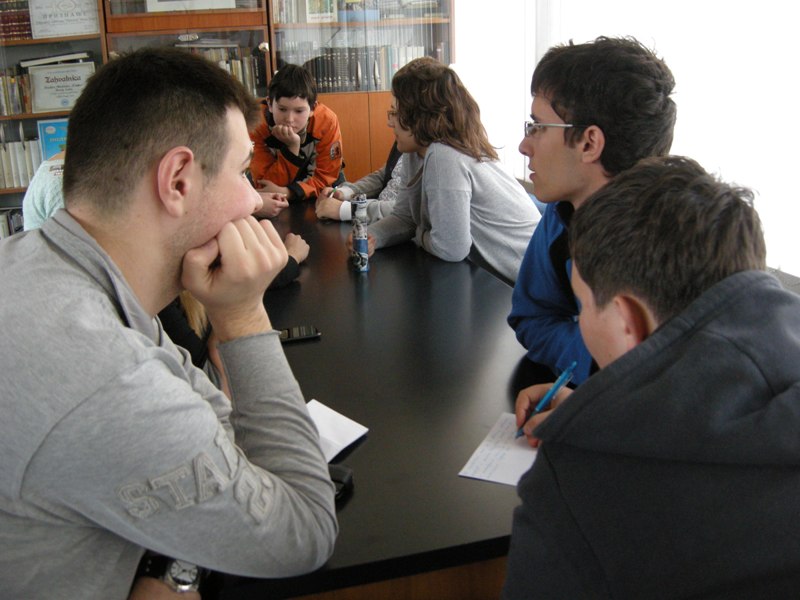 Učenici su došli sa profesoricama Suzanom Krvavicom i Natalijom Petakovič, a u pratnji je takođe bila Branka Bukovec iz Društva za razvijanje dobrovoljnog rada Novo mesto, jer je zapravo ona inicijator brojnih projekata koji povezuju Banju Luku i Novo mesto. U petak su gosti zajedno sa našim učenicima posjetili samostan Trapisti i Slatinu. Prenoćili su kod vršnjaka i sa njima sljedeći dan došli na nastavu slovenačkog jezika. Učenici dopunske nastave slovenačkog jezika su im predstavili skeč Šale o školi. Dve učenice iz Novog mesta su rekle nešto o gimnaziji, a svi zajedno su se iskušali u kreativnom pisanju. Kako se može opisati dolazak u Banju Luku? Na mnogo različitih načina! Izazov nam je bila knjiga Raymonda Queneaua „Vježbe u slogu“. Nije bilo dovoljno vremena da bi se događaj opisao na 99 načina, a neke zabavne riječi su nastale i na kraju školske godine ćete ih moći pročitati u biltenu.