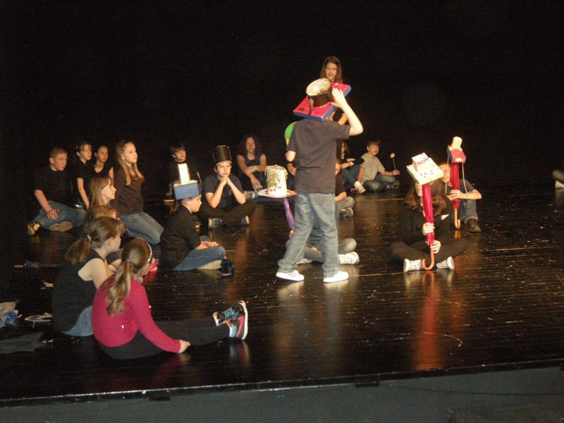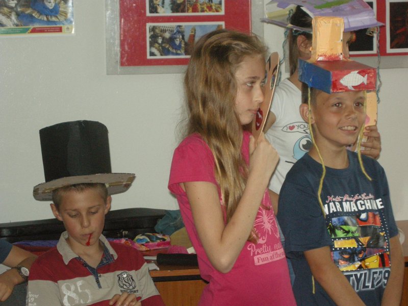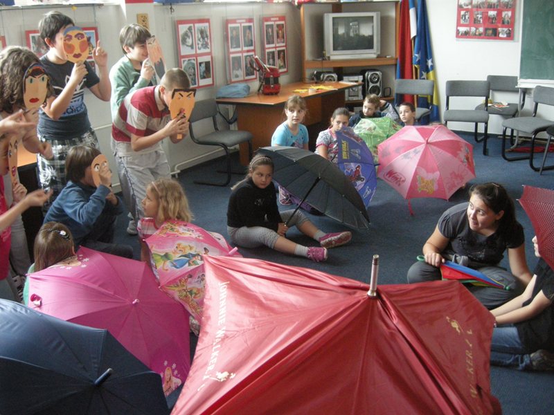 U petak su cijeli dan pravili maske i lutke, u subotu su razdijelili uloge i vježbali, u nedjelju su već pokazali rezultate svog rada. Nastala je predstava „Moj kišobran može biti i balon“, a djeca su je odigrala pred punom dvoranom pozorišta Jazavac. Bajka Ele Peroci nas je povela u zemlju Klobučariju. Nastupalo je više od tridesetoro djece, a predstavu je pratila muzika – čuli su se zvuci harmonike, gitare i violine. Fotografije govore više nego riječi, mada je teško opisati šta sve su morala djeca napraviti i naučiti da bi mogli odigrati predstavu.