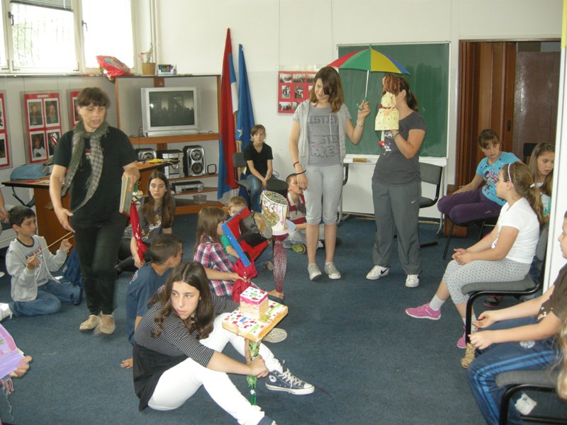 Jelena Sitar i Igor Cvetko, lutkari iz Ljubljane, su sa učencima dopunske nastave slovenačkog jezika iz Banjaluke i Slatine pripremili lutkarsku radionicu.