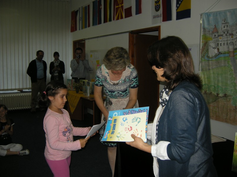 Nakon bajki, pjesama i zagonetki došlo je vrijeme da se podijele potvrde za pohađanje dopunske nastave slovenačkog jezika. Baš svi učenici su zaslužili pohvale, jer su cijelu godinu vrijedno pohađali nastavu i učestvovali na brojnim aktivnostima tokom nastave. Svaki učenik je dobio svoj izvod Cicidoja, u kojem je objavljena pjesma Anje Štefan Kravica mi je ušla, i bilten To smo mi. Bilten je izašao povodom kraja školske godine i predstavlja brojne aktivnosti koje su se dešavale tokom godine. Učenici, koji skoro nisu izostajali sa dopunske nastave slovenačkog jezika, dobili su CD sa bajkama Za devetimi gorami, a učenici iz Slatine, koji su cijele godine vrijedno čitali, dobili su priznanja Bralne značke Slovenije i književnu nagradu. Dogovorili smo se da će djeca čitati i tokom ljeta, jer smo se uključili u projekat Gradske biblioteke Ljubljana Poletavci – ljetni čitaoci. Ljeto će takođe biti vrijeme za odmor i igru, pa smo zato svima poželjeli sretne praznike.