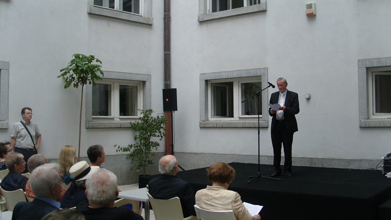 Na otvaranju izložbe su govorili Mateja Komel Snoj, direktorica Narodne i univerzitetske biblioteke, Gorazd Žmavc, ministar za Slovence po svijetu, Barbara Hanuš, učiteljica dopunske nastave slovenačkog jezika u Slatini i Vera Papež Adamič, autor izložbe. Djeca, koja pohađaju dopunsku nastavu slovenačkog jezika, obučena u narodne nošnje predstavila su se slovenačkim narodnim pjesmama. Na otvaranju je bilo mnogo ljudi, među njima i potomci porodica, koje su predstavljene na izložbi. Pored priča slovenačkih porodica, koje su uticale na razvoj Slatine, predstavljena je i današnja slika tog zdravstvenog mjesta. Na fotografijama su izložene ilustracije dječijih slika, među njima je i ilustracija kozolca (naprave za sušenje), jer je porodica Lunić u Slatini postavila baš pravi slovenački kozolec.