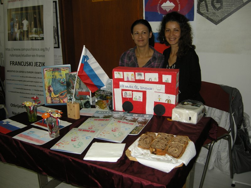 Učestvovali su sa štandom koji je privukao dosta pažnje. Učenici iz različitih škola su izabrali lijepe misli, napisane na slovenačkom jeziku. Jesu li ih razumjeli? Ne, molili su nas da ih prevedemo. Sa zanimanjem su probali štrudlu i rekli smo im da je to tradicionalna slovenačka poslastica.