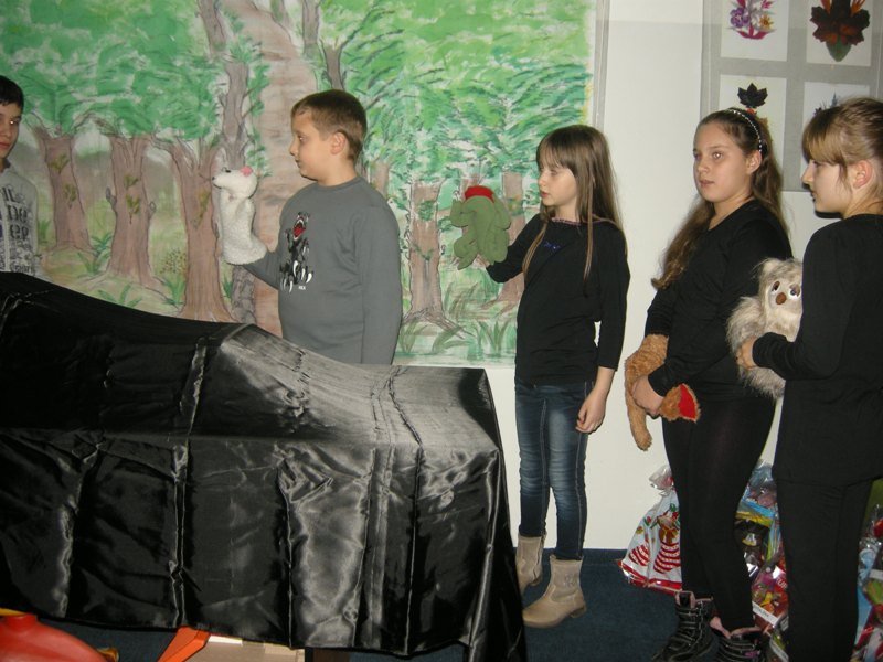 Čak 69 ih je imao - 19 za predškolsku djecu, 44 za osnovce i 6 za srednjoškolce. Učenici dopunske nastave slovenačkog jezika su mu priredili program. Govorili su o tome šta je sreća. U ovim danima, kada svi želimo sreću, često razmišljamo o tome, šta si zaista želimo. Da li je sreća mnogo novca ili mnogo slobodnog vremena? Dobri prijatelji ili zanimljive kompjuterske igrice? Učenici su predstavili misli pjesnika i pisaca i svoje želje. Djeca su srećna kada nemaju puno domaće zadaće, kada dobiju dobre ocjene a i tada kada idu u Sloveniju. Kada si mali, sreća je kada izabereš hrabrost i ne pustiš da te veliki straše. To su nam pokazali naši najmlađi učenici, koji su odigrali lutkovnu igru Zverjasec. Vidjeli smo i dramski prizor Kako je gospodin Filodendron tražio sreću. Priču je napisao Andrej Rozman Roza, a odigrali su je učenici iz Slatine. Kažu da samo srećan čovjek može usrećiti druge ljude. Ove večeri su djeca i Deda Mraz donijeli mnogo veselja među sve posjetioce koji su potpuno ispunili prostor Kluba nacionalnih manjina.