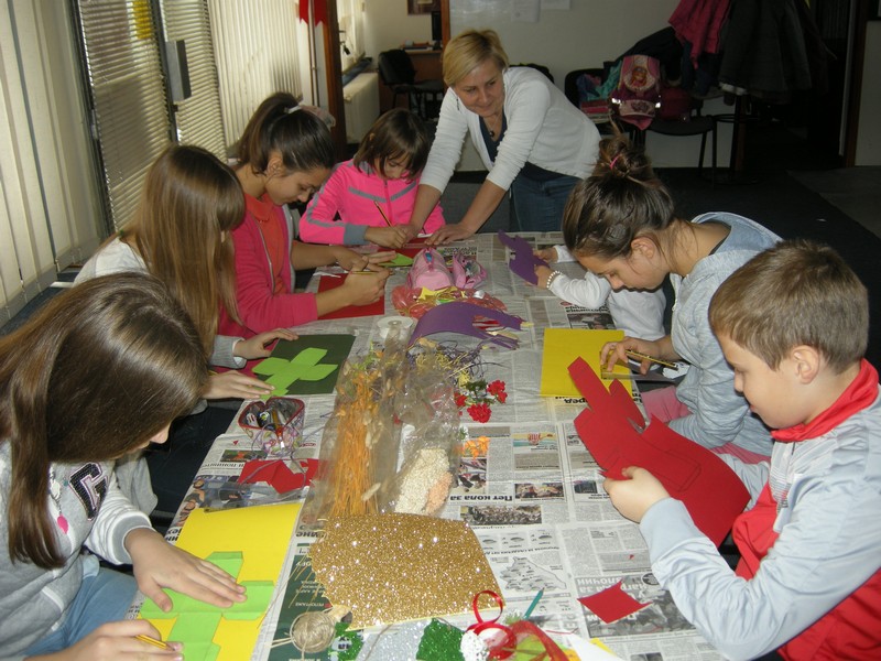 I u subotu, 12. decembra, su cijelo dopodne stvarali. Radionice su se održale u prostorima Kluba nacionalnih manjina, a vodili su ih Alenka, Ivana, Tamara, Barbara i Franci. Učenici su od jabuka, piškota i šlaga spremili ukusan slatkiš i odmah ga pojeli. Od papira su napravili kutijice u koje će staviti bombon ili mali poklon. Izradili su i kalendare za 2016. godinu i zvjezdice od papira kojima mogu ukrasiti stan. Decembarske radionice su već tradicionalne a svake godine napravimo nešto novo i tako dočaramo novogodišnji ambijent.