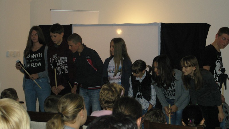 Učenici su se na posjetu Deda Mraza dugo pripremali. Na radionici Biblioteka – vasiona blaga su izradili lutke-sjenke za predstave Zašto je smreka i zimi zelena, Četiri muzičara i Peter Klepec. Lutkama-sjenkama su uprizorili bajke koje govore o svemu tome što je važno u životu: da pomažemo svima koji su u nevolji i da cijenimo i sitne stvari. Bajke nam pripovijedaju da se dobrota uvijek isplati i da dobro pobjeđuje zlo. Učenici, koji pohađaju dopunsku nastavu slovenačkog jezika u Slatini, su uprizorili predstavu o mlinaru koji nema nikakvih briga. Pokazali su, kako lijepo je živjeti, ako znamo pobijediti brige. Program su započeli najmlađi učenici, koji su slovenački jezik počeli učiti u oktobru, a zaključili su ga srednješkolci, koji slovenačkim jezikom već dobro vladaju.