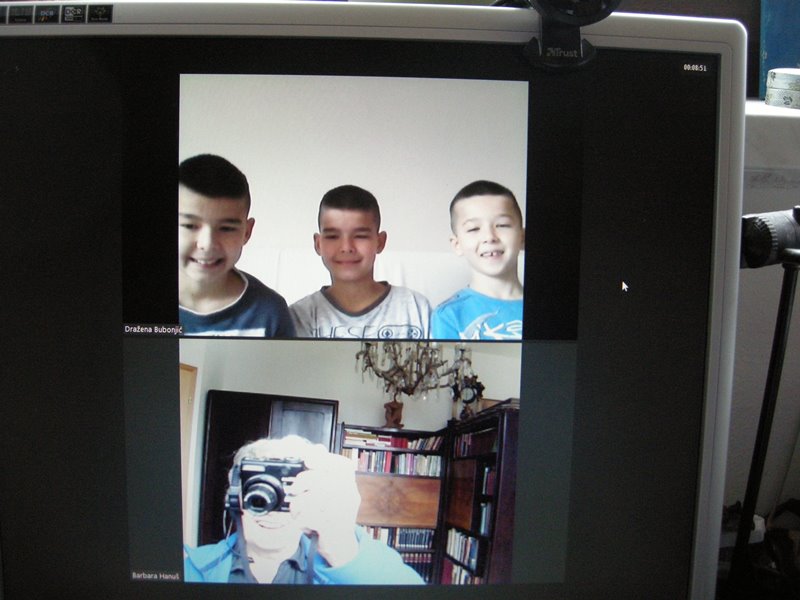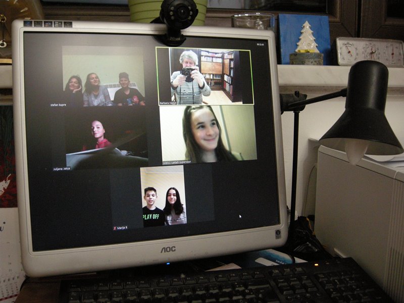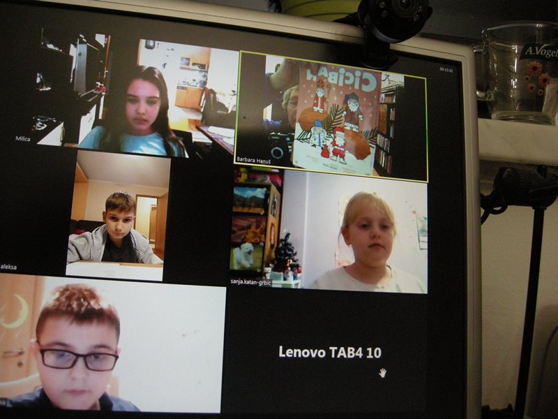 Računarski program Zoom povezuje nas preko ekrana. Časovi su po redovnom rasporedu, program nam omogućava da se vidimo i razgovaramo. U učenju jezika moramo razviti četiri komunikacijske vještine: čitanje, pisanje, slušanje i govor. Možemo vježbati čitanje i pisanje čak i ako se ne vidimo. Puno je i snimaka koje možemo preslušati i s njima testiramo razumijevanje. Ali još uvijek moramo pronaći mogućnosti za razgovor. Budući da naši učenici kod kuće ne govore slovenački, a slovenački čak ni ne čuju u svom okruženju, važno je da se nađemo preko ekrana. Ponekad je to samo priča i razgovor uz tekstove koje čitamo, a ponekad je potrebno objasniti i gramatička pravila. Dodatni časovi slovenačkog jezika razlikuju se od onoga kako je bilo nekada, ali je važno da se redovno održavaju. Na taj način nećemo zaboraviti sve što smo do sada naučili, a uz nove oblike rada ćemo naučiti i puno novih stvari. Ostajemo povezani i nadamo se da će uskoro opet sve biti kao prije.
